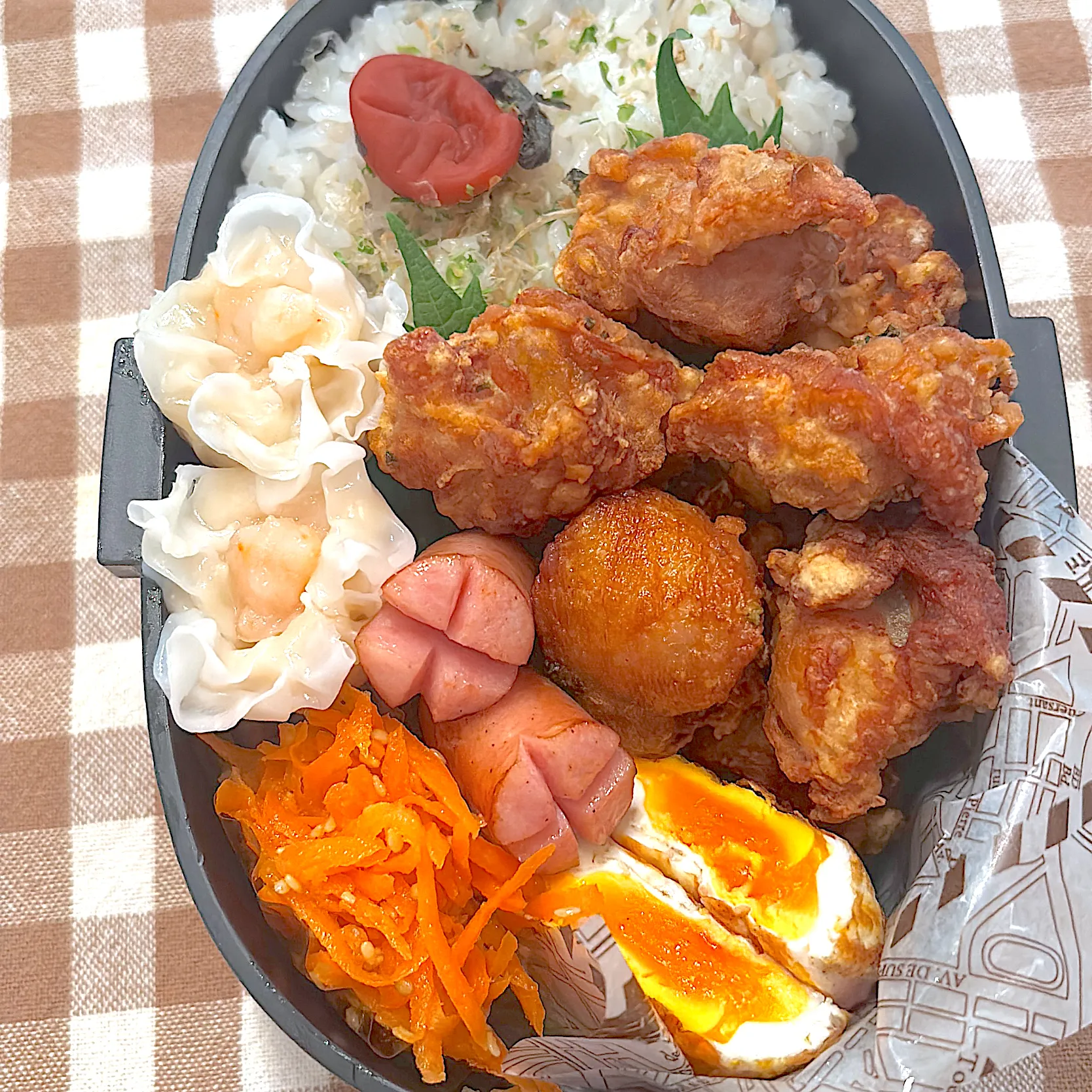 #松茸風味の唐揚げ #目玉焼き #エビシューマイ(冷) #人参ラペ #男子高校生弁当