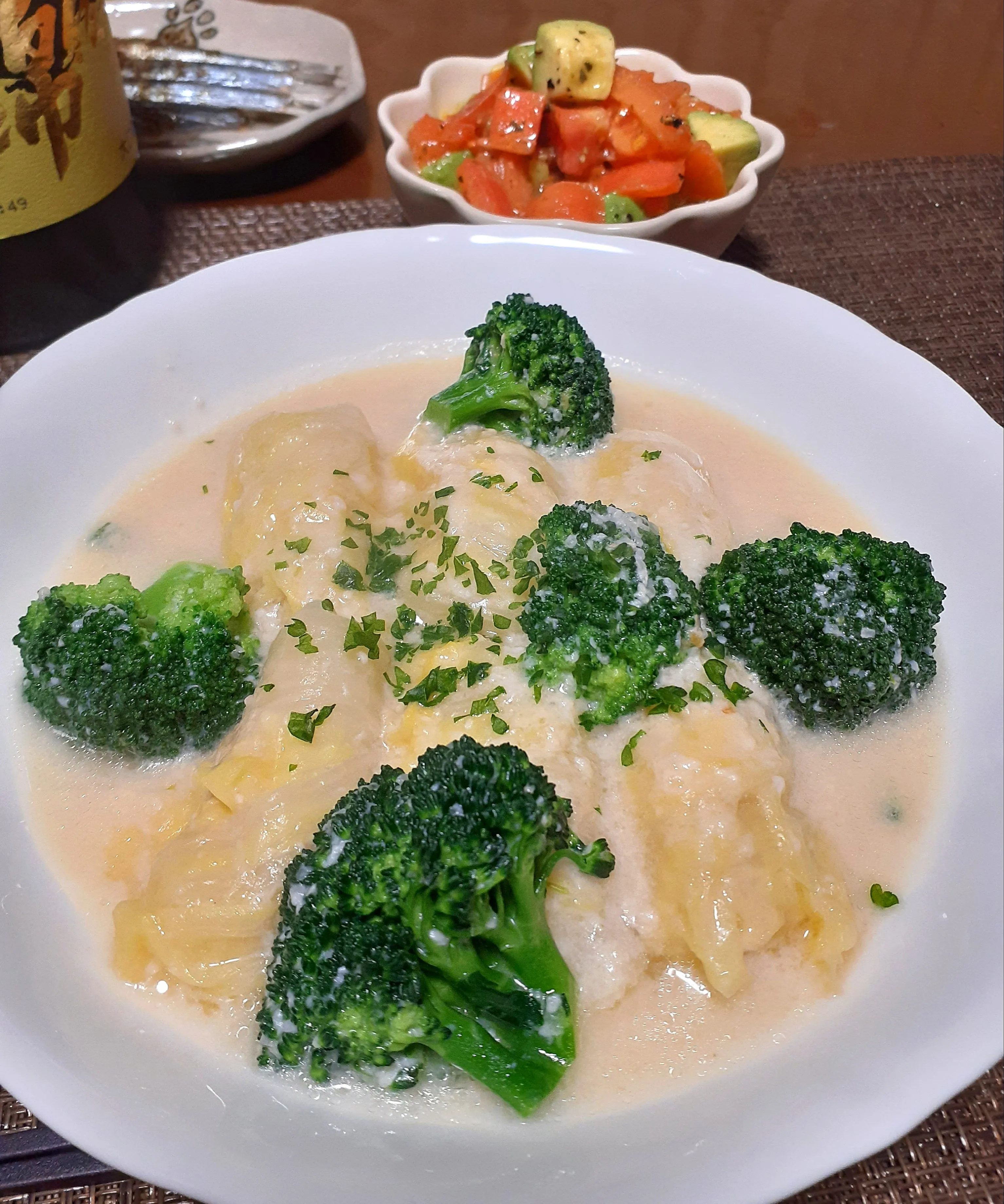 白菜ロールの酒粕入りクリームシチュー😍😍✨