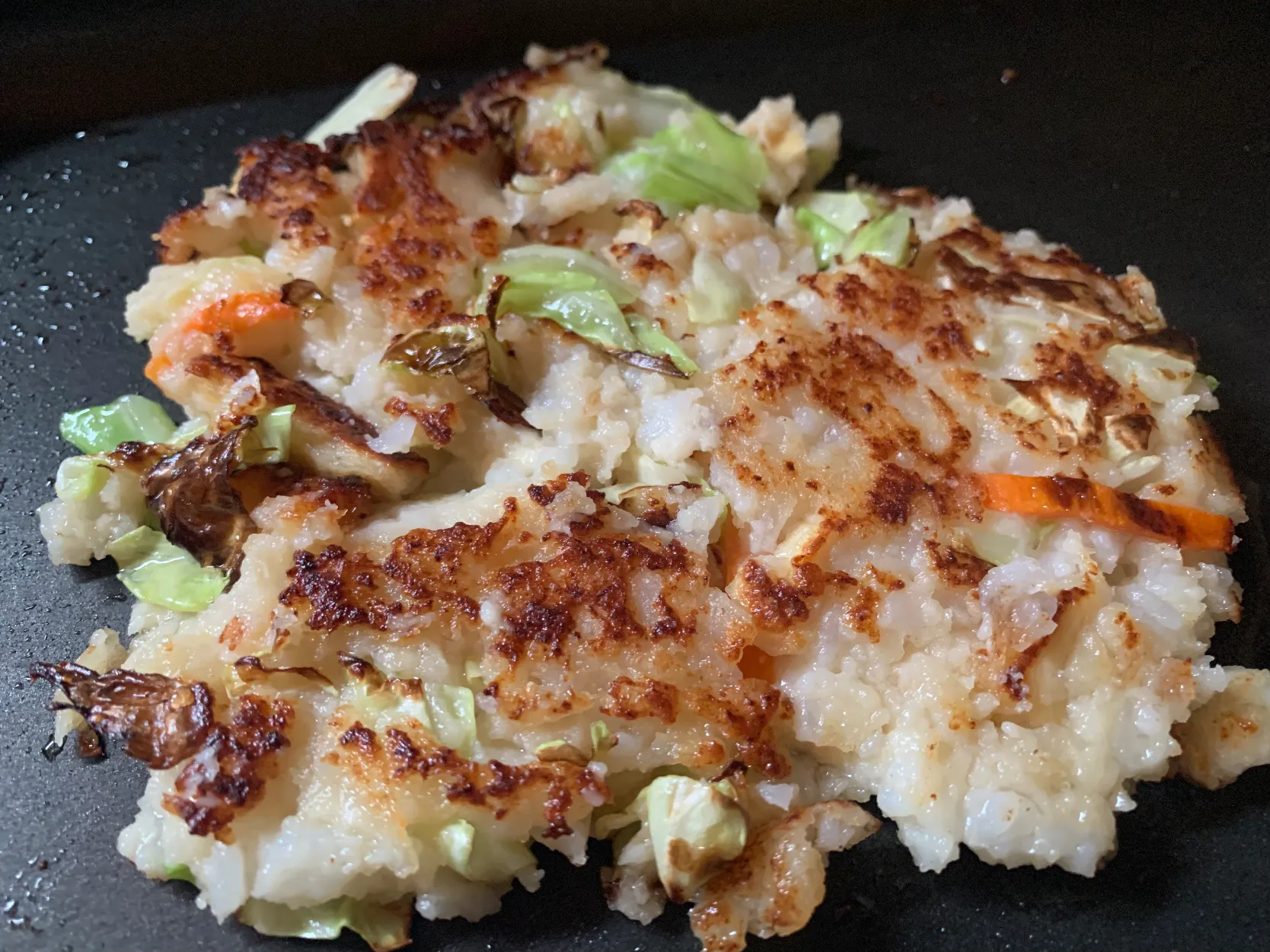 鶏ミンチ、パン粉、小麦粉、塩糀パウダー、牛乳、キャベツ、にんじん、ご飯、生姜チューブ
