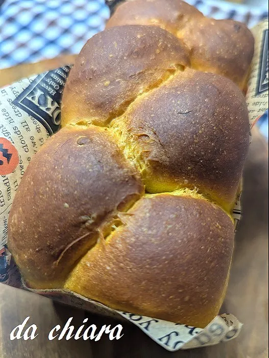 かぼちゃを練り込んだブリオッシュ食パンです。