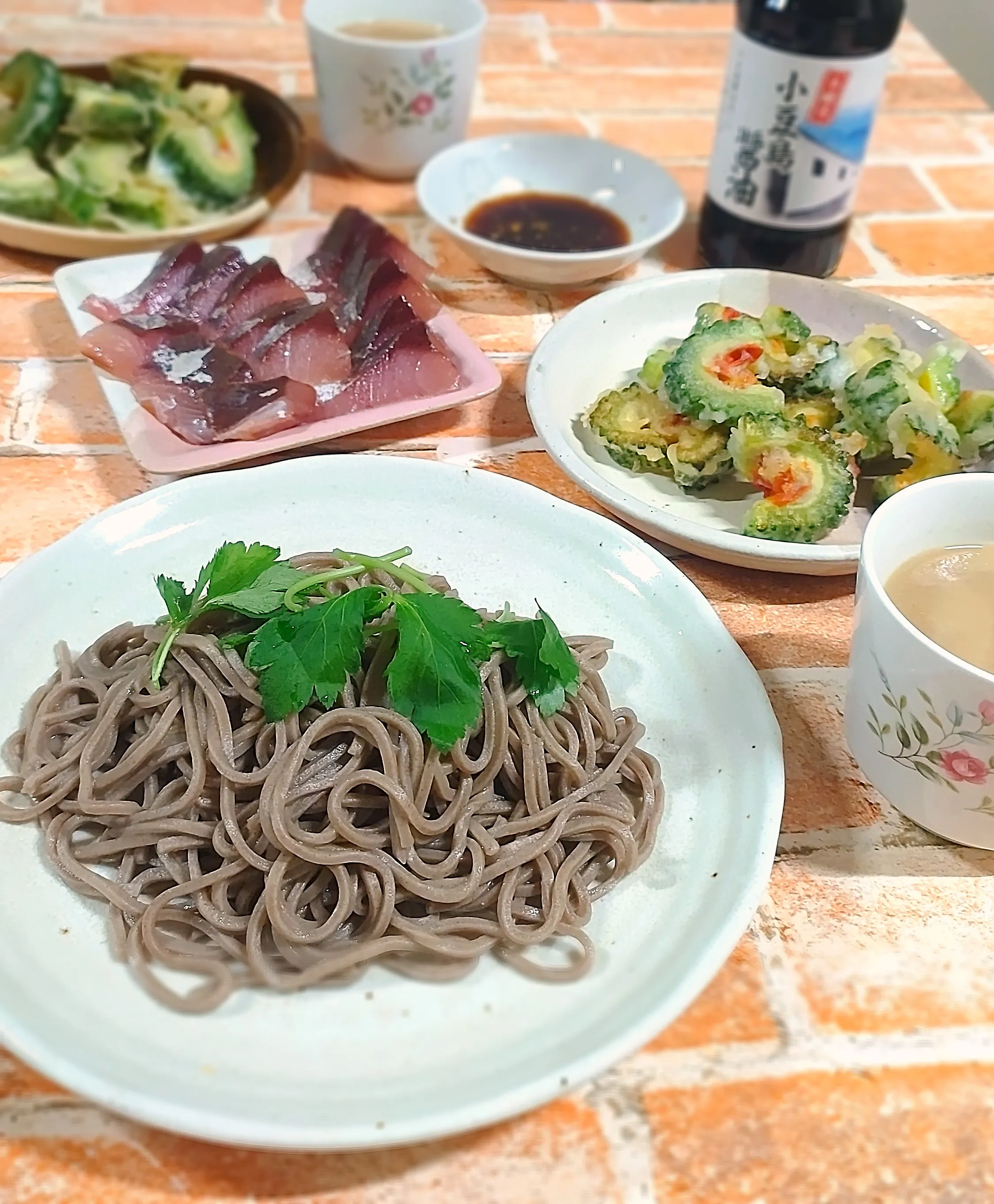 ゴーヤの天ぷらもイナダのお刺身も美味しそう!