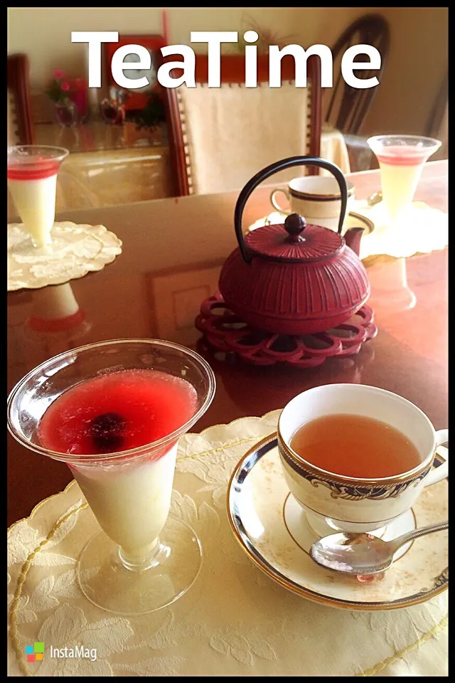 ヨーグルトムースとハイビスカスジェリー、マンゴーティーと。