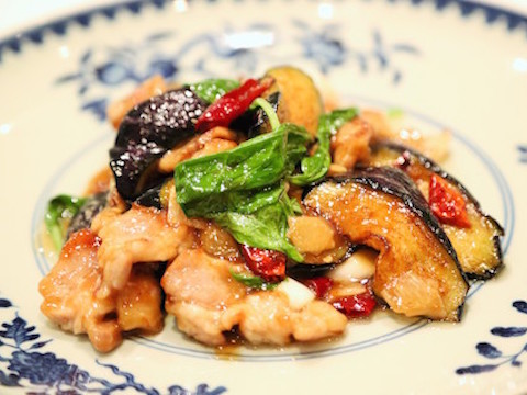 中国には、イタリアと品種は違うバジル(ホールバジル)を使った料理があります。今回は手に入りやすいスイートバジルを使用。なすを高温で揚げると、油っぽさを感じさせない仕上がりになります。