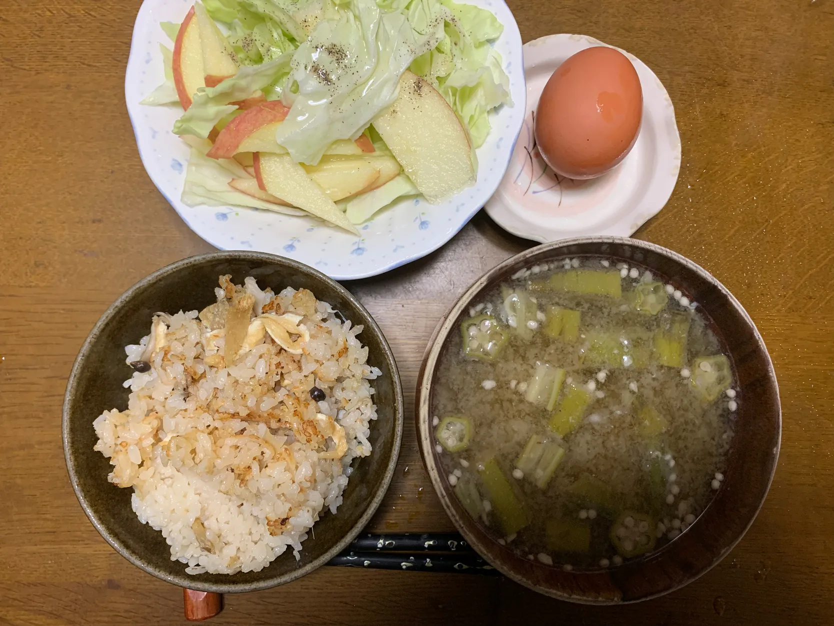 ご飯と味噌汁は昨日の残り物少し