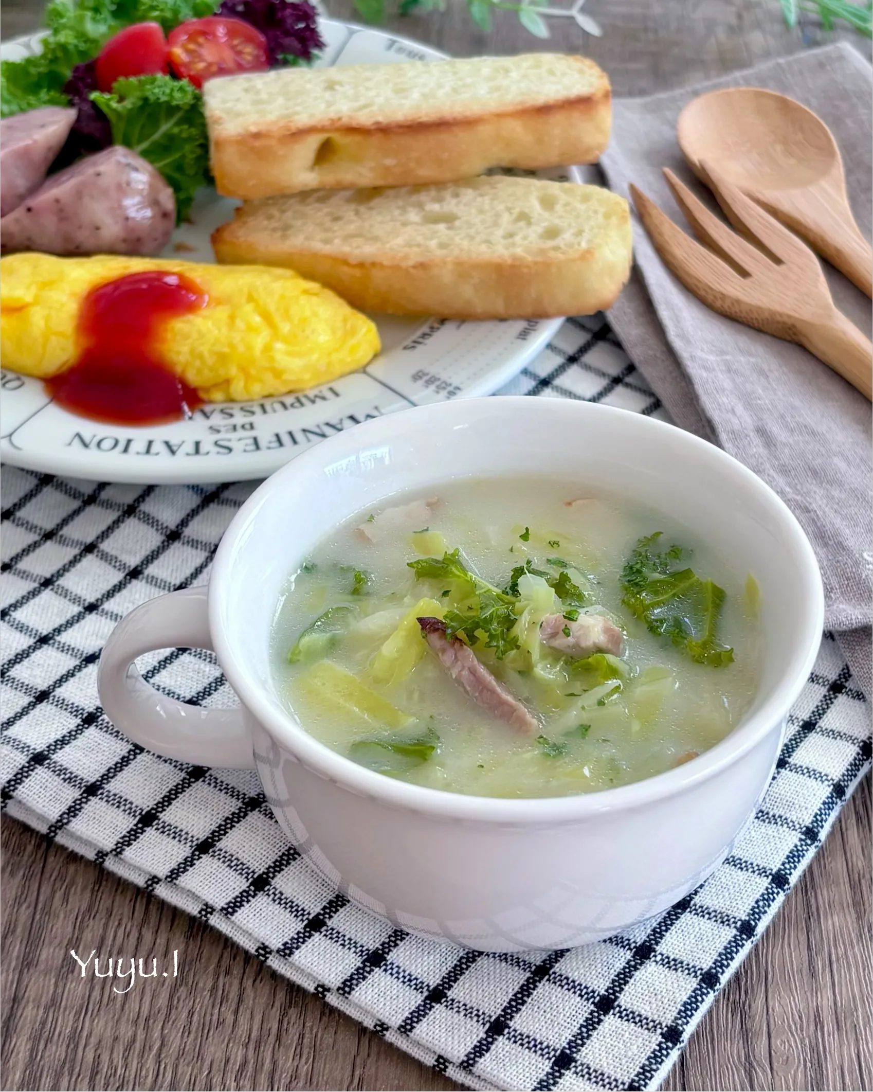 #スープ #ケール #サラダケール #ミルクスープ #春 #キャベツ #ベーコン
