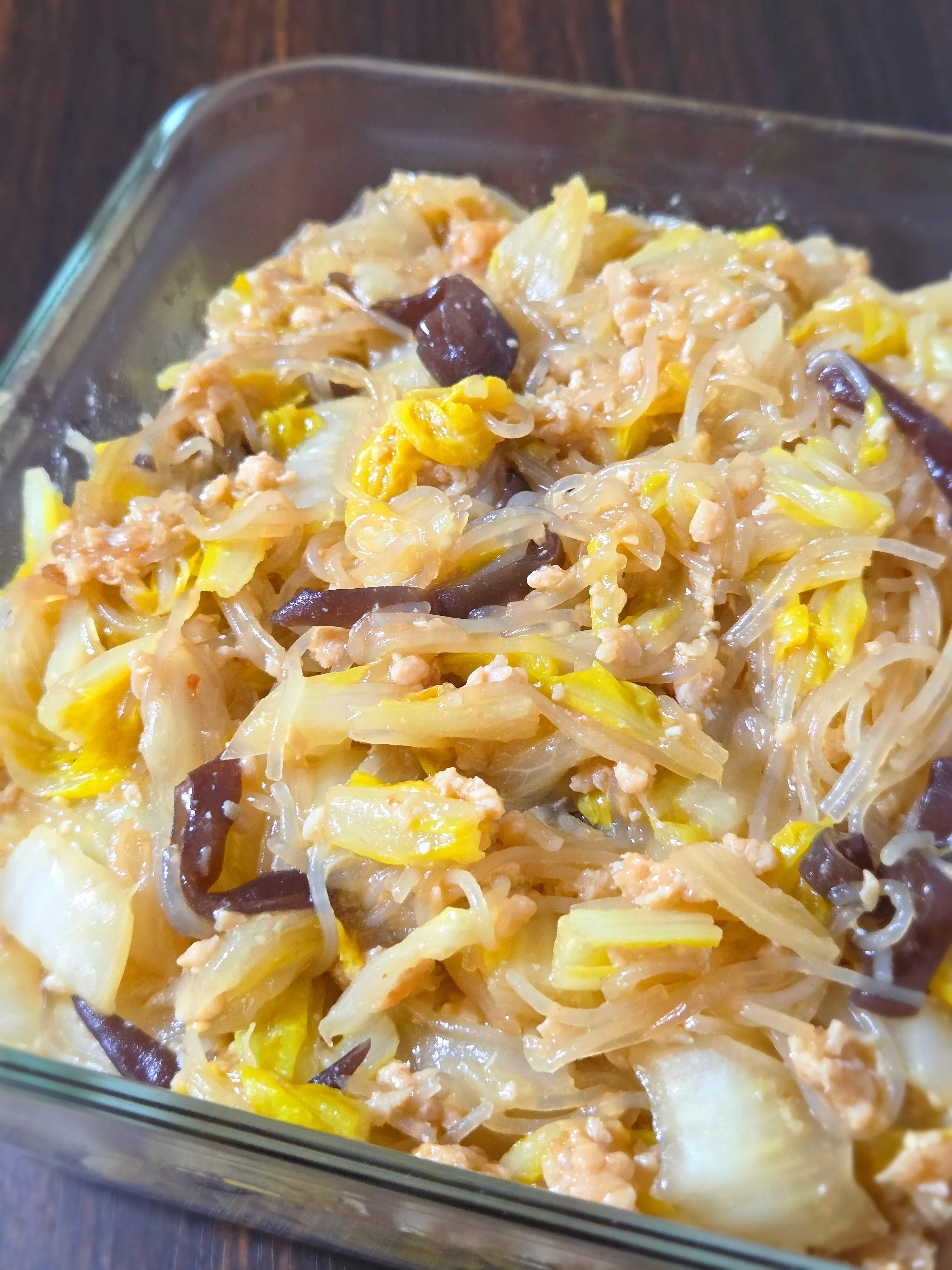 #晩ご飯 #麻婆春雨 #春雨 #白菜 #鶏ひき肉 #キクラゲ #長ネギ