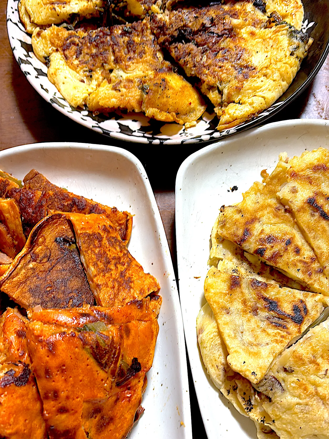 チヂミ3種(大根葉、椎茸と玉ねぎ、ネギキムチ)