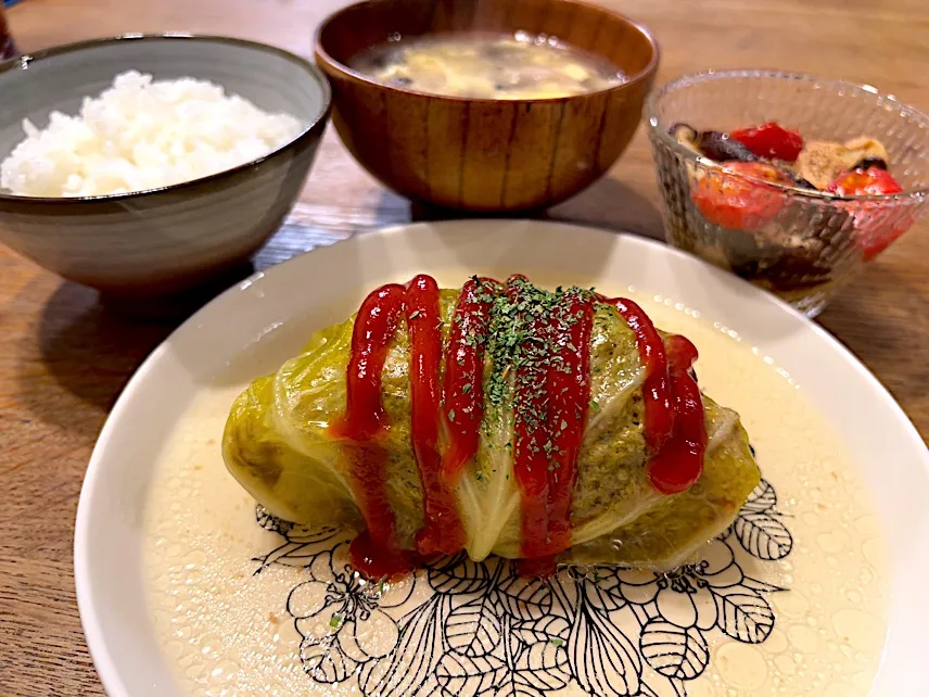 残り物の#卵スープ #キノコとミニトマトのガーリック炒めde#晩ごはん