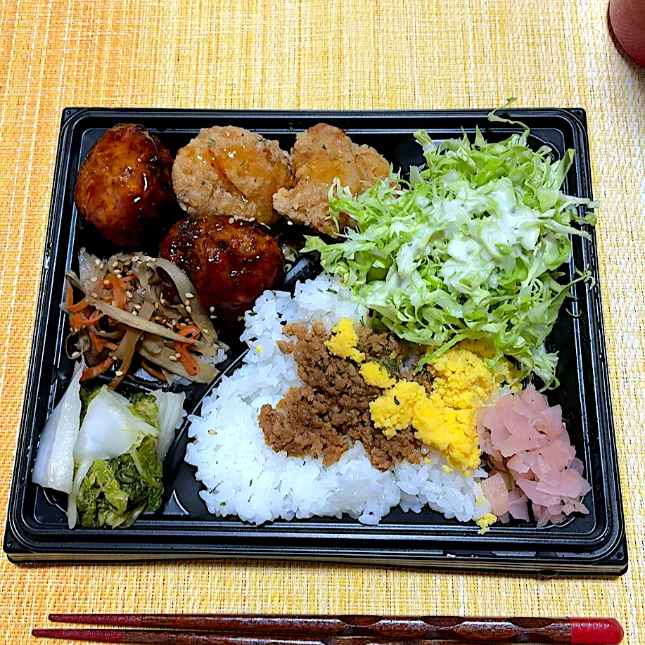 #晩ご飯 #お弁当購入 #多いので半分明日のランチに残す #アルモン追加して #盛り盛り弁当に😅 #温めて #追加したので #ポチッとした