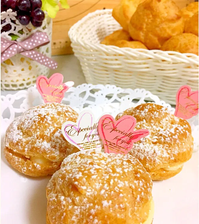 カスタードシュークリーム♡ 上手く膨らんだ‼︎٩(^‿^)۶