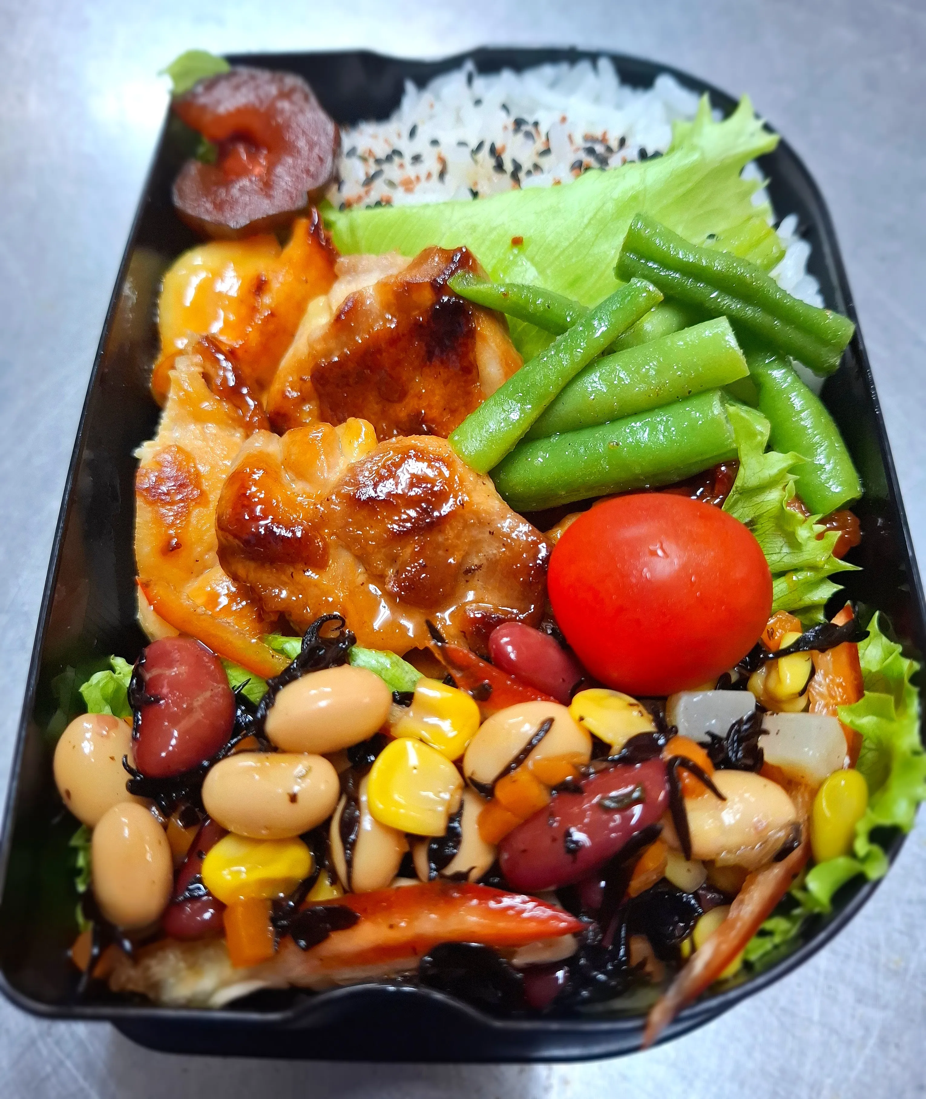 今日の娘ちゃん弁当、鳥照りと豆サラダ🥗