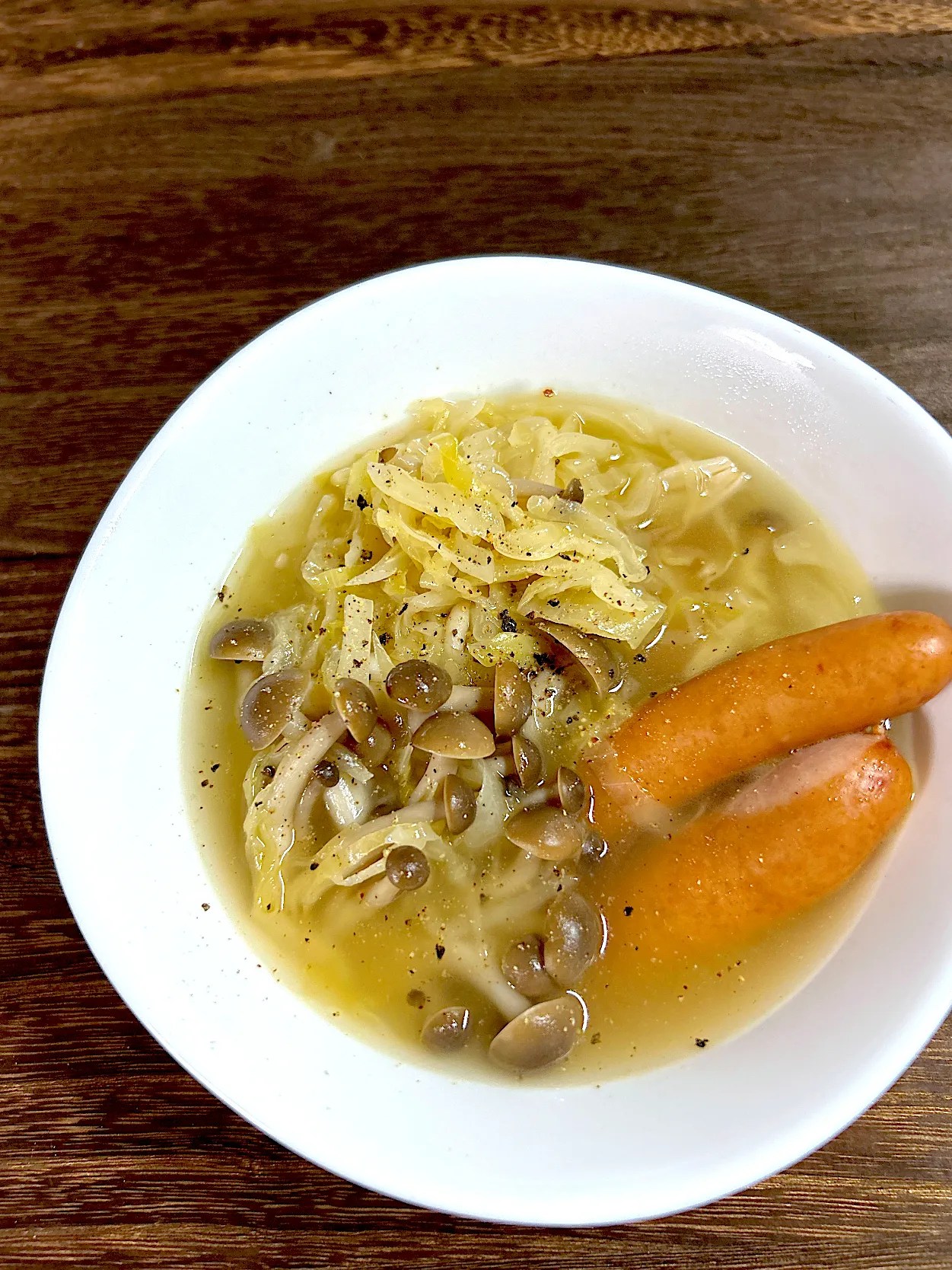 さっと湯がいたシャウエッセンとしめじ🍄で