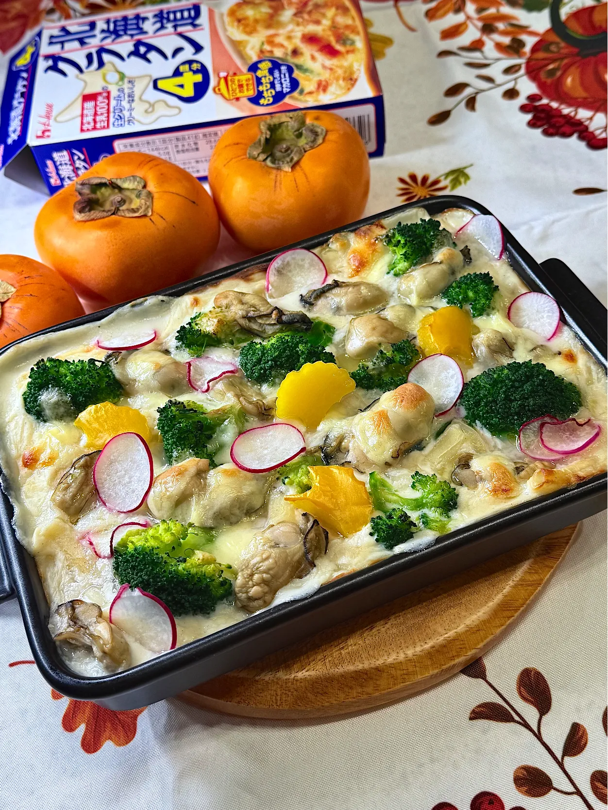 牡蠣とブロッコリーのグラタンめっちゃ美味しそう😋