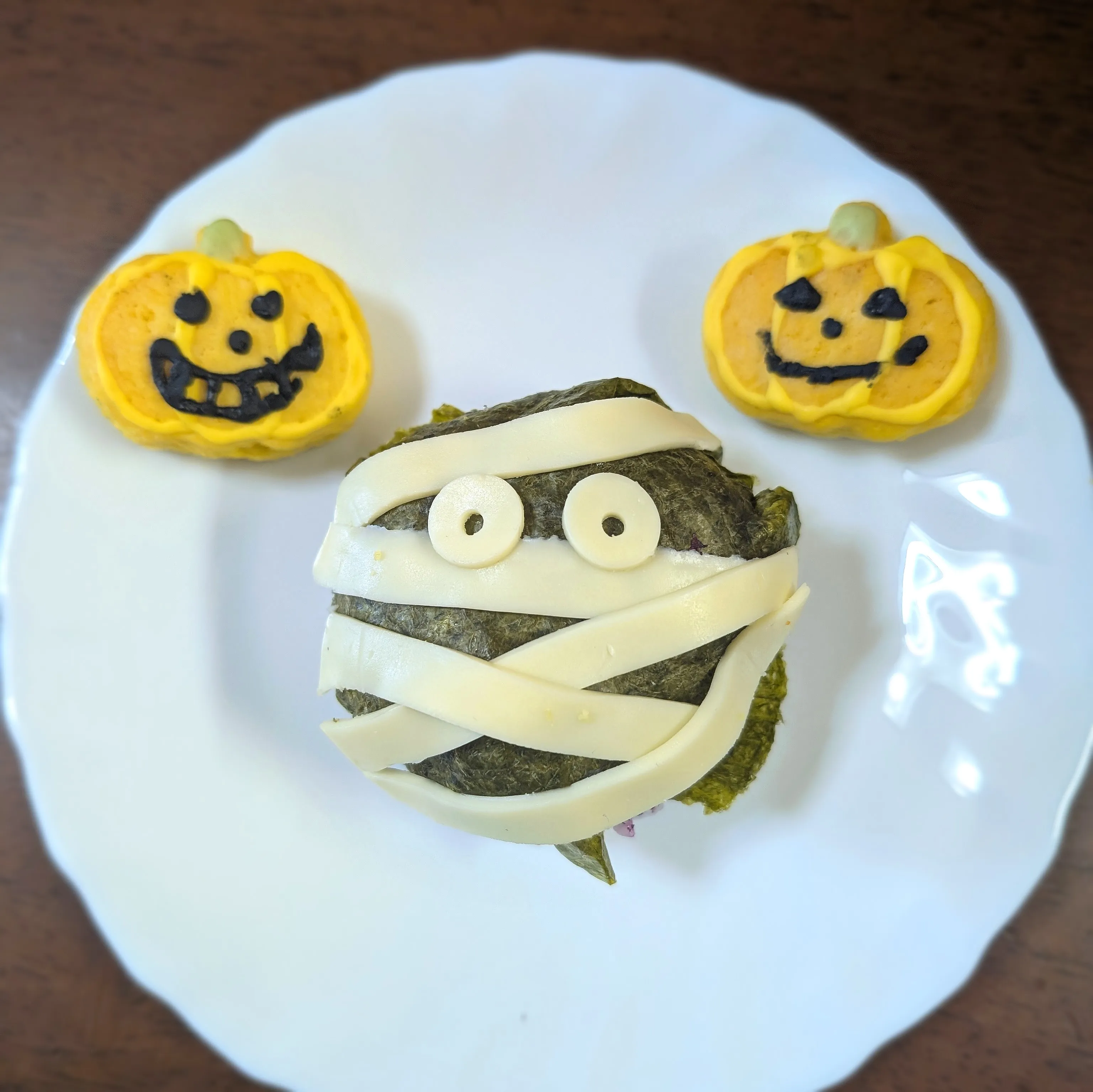 ミイラに見えるかな?#お弁当初心者 #おべんとう記録 #お弁当記録 #BENTOグランプリ2025 #bentoグランプリ2025 #ハロウィン弁当 #ミイラおにぎり