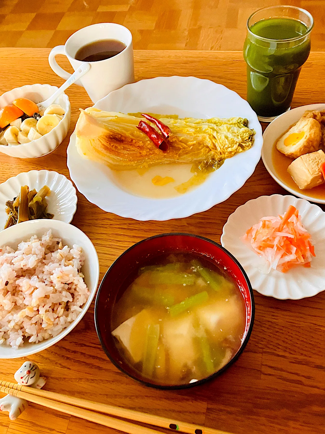 メインは白菜ステーキ、小ぶりの白菜4分の1を食べました。満腹です。