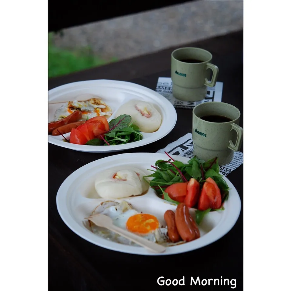 朝食は、低糖質のパンとサラダと目玉焼き&ソーセージにコーヒーで簡単に。