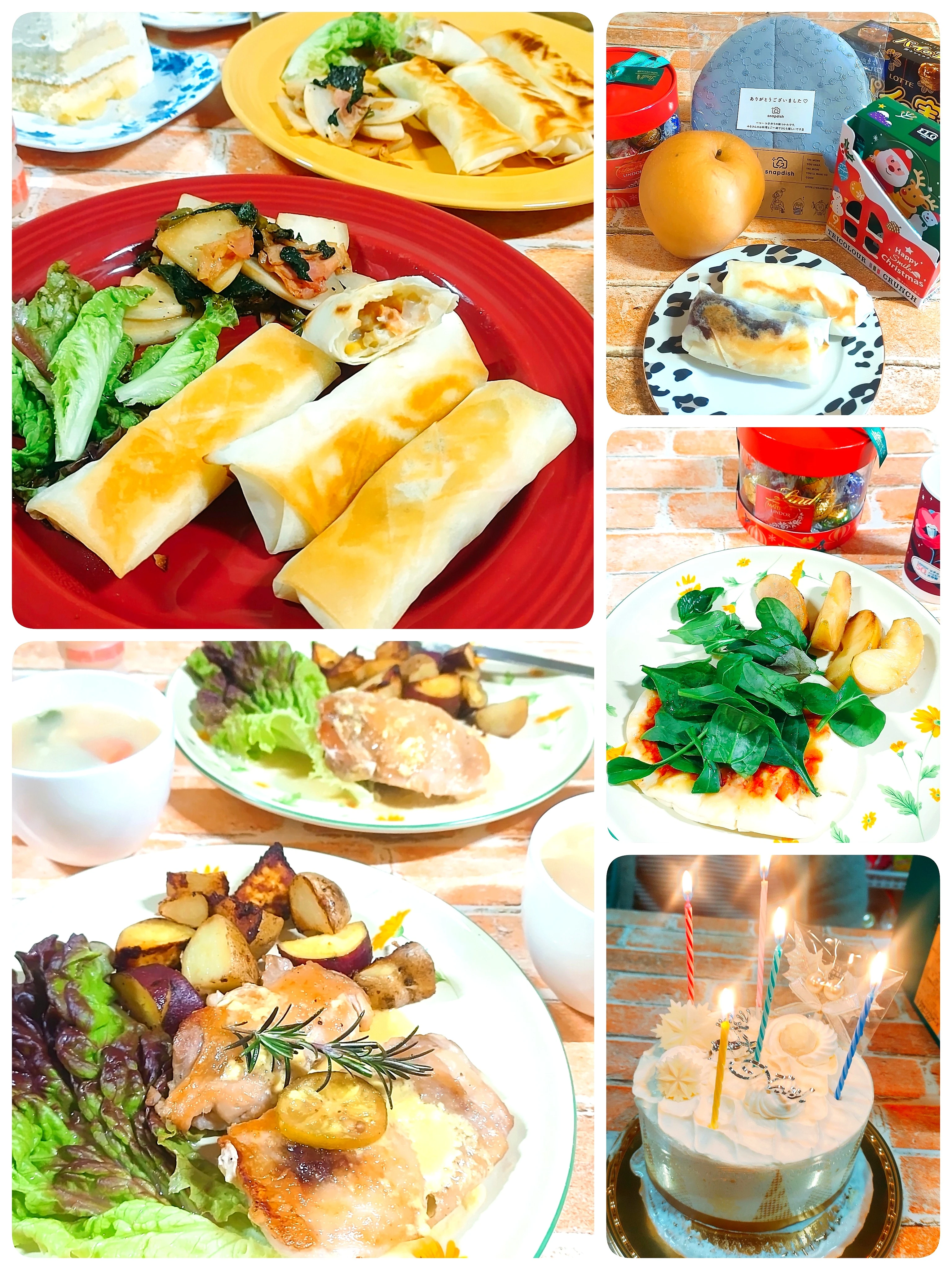 🎁達と写っている春巻きは鮭クリームで余った春巻きの皮で餡子とバナナを包みました🍌これも旨い