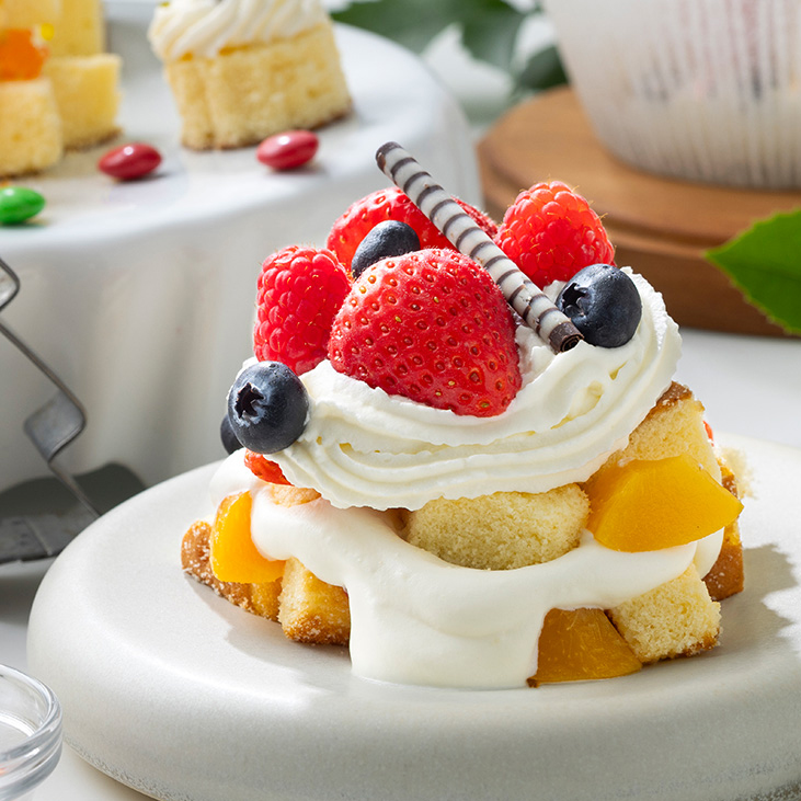 好きな具材にたっぷりのクリームをのせて自分だけの オリジナルクリスマスケーキ のでき上がり♪