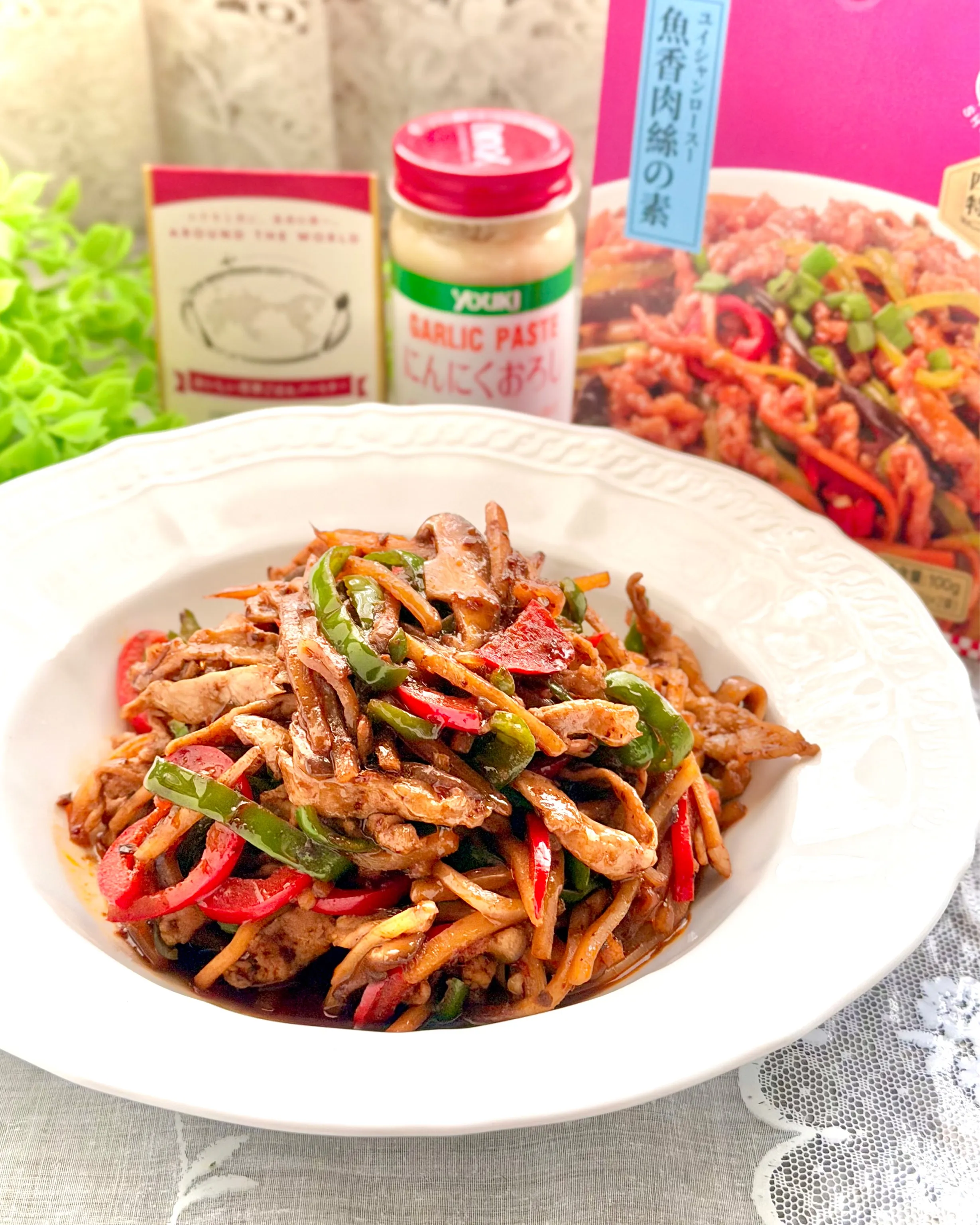 ちなみにこちらは、ユウキ食品さんのヒルトンの名古屋食の祭典の時にいただいた魚香肉絲の素で作りました(≧∇≦)