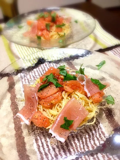 夏って感じのパスタにしたかったんです~ (๑´⍢`๑)