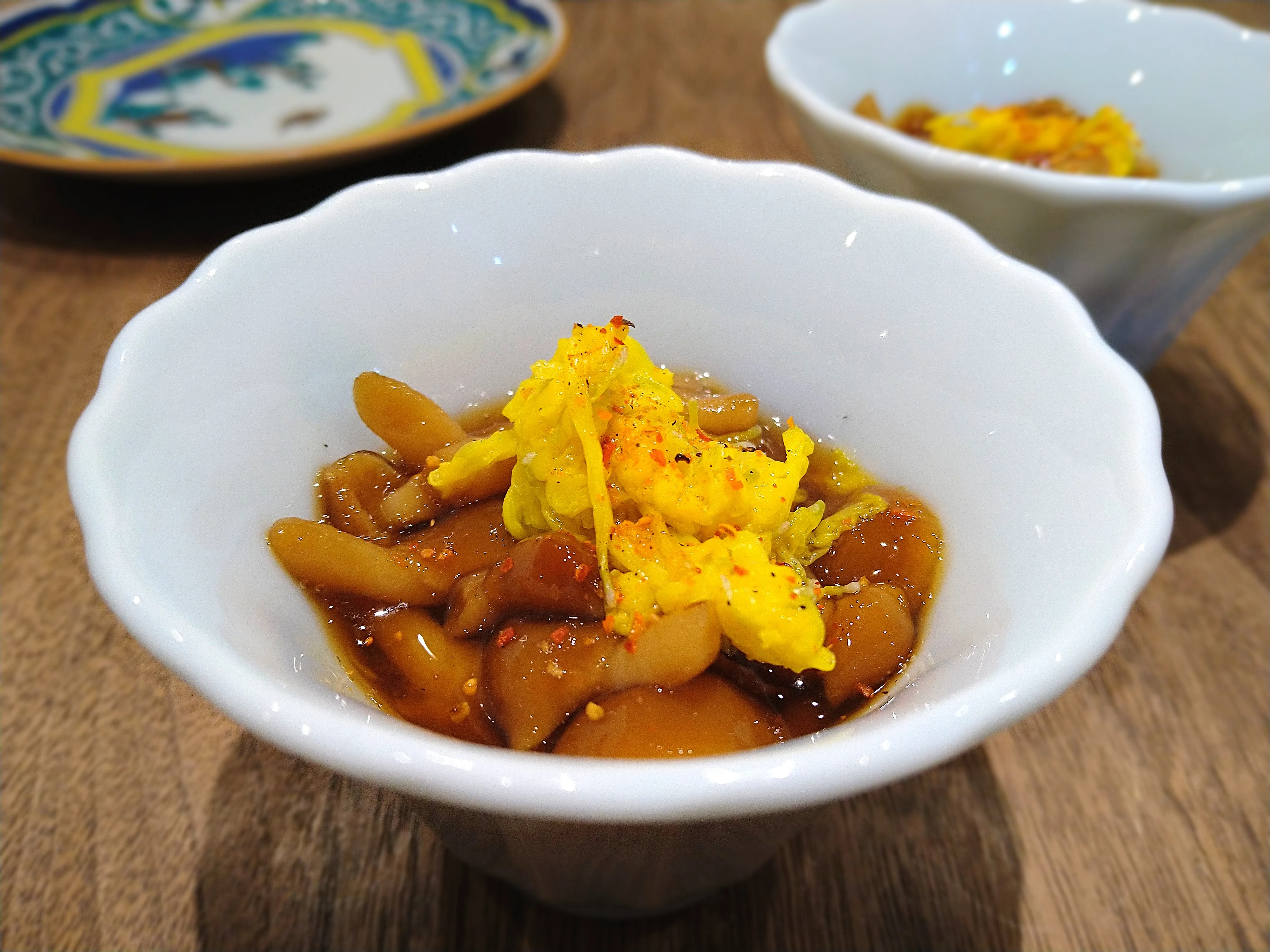 #おつまみ #野菜料理 #なめこ#食用菊#菊#エディブルフラワー#和食#小鉢#あと一品