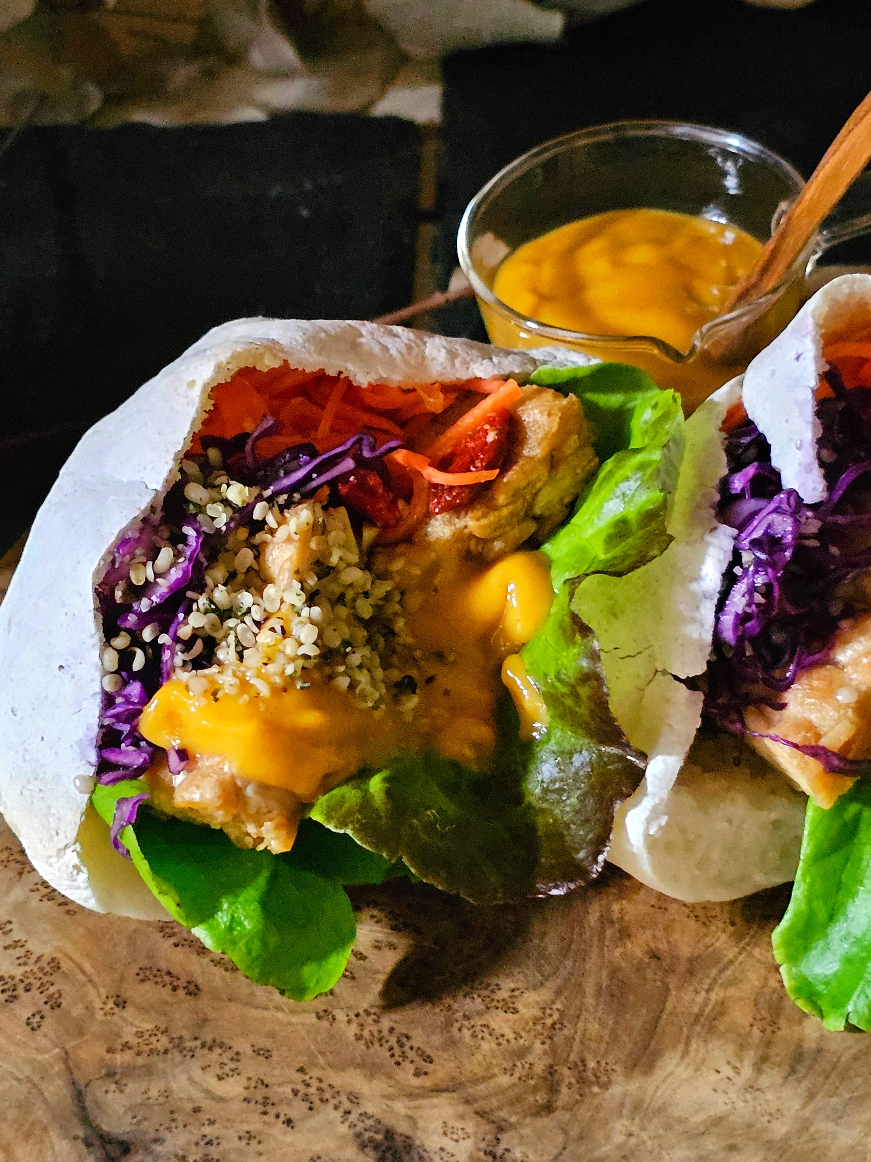 ポッケに自家製テンペや、ラペを挟んで、ヴィーガンチェダーチーズかければ、最高に美味しい❤️