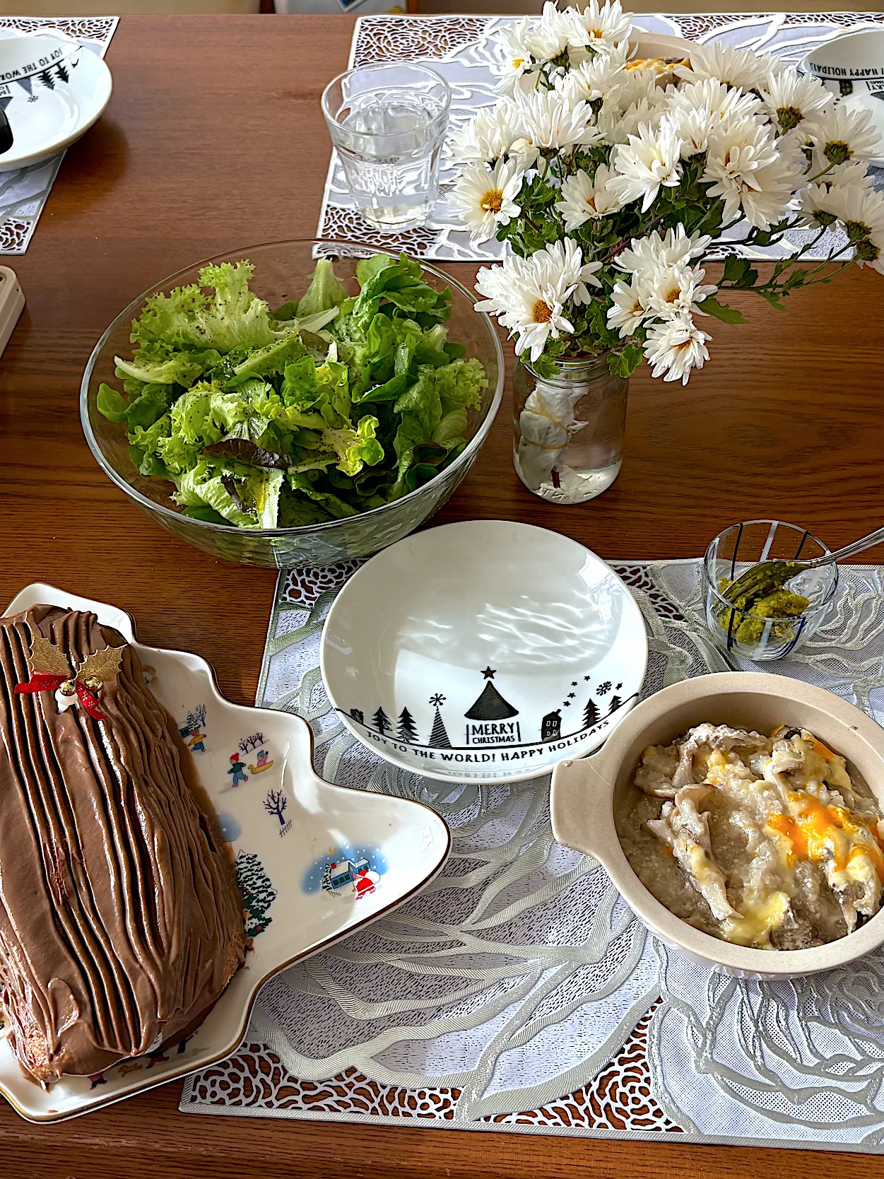 舞茸のリゾット、アボガドロールケーキ、ゆずドレッシングのグリーンサラダ