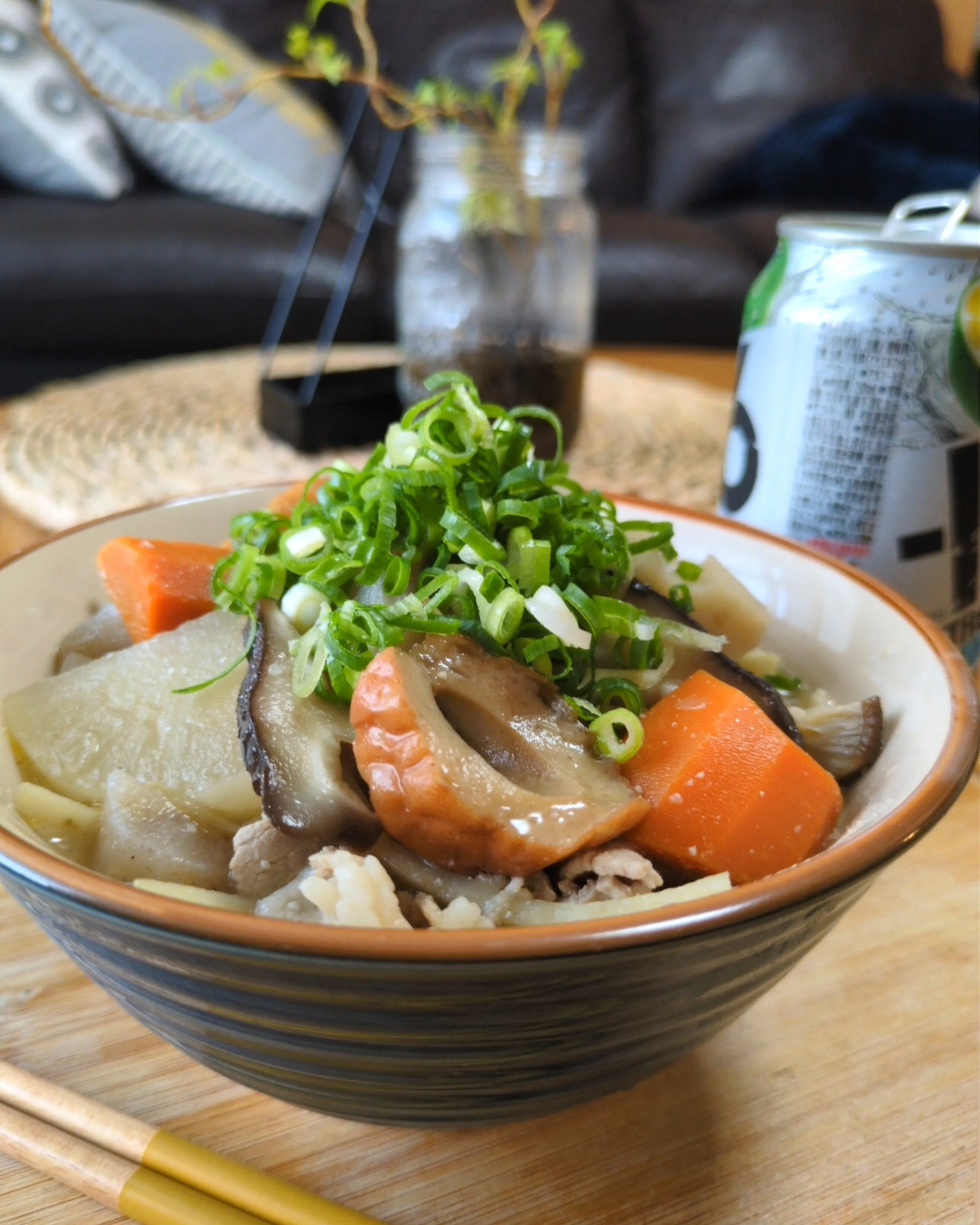 筑前煮からの~豚汁もゴロゴロ具材だからおつまみに最高👍