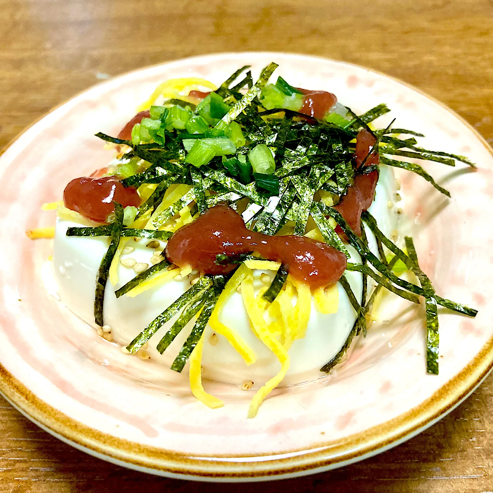 乾燥しているので、何となく冷や奴が食べたくて飾り冷や奴にして食べました😊💕