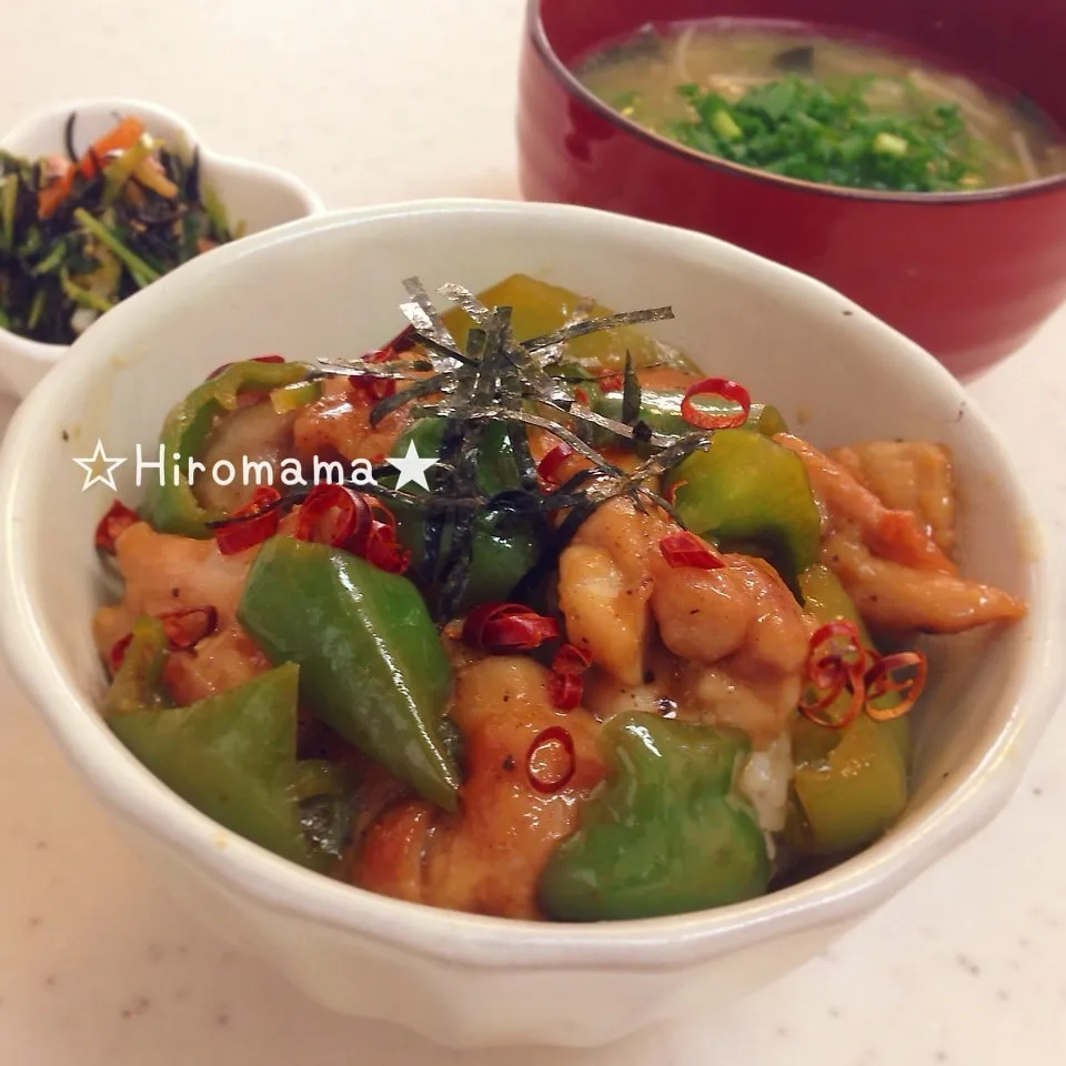 鶏肉とピーマンの甘辛丼ぶりは、お酢を加えてあるからさっぱりしていて美味しいよぉ〜♬ #丼もの #ごはん・丼ぶり