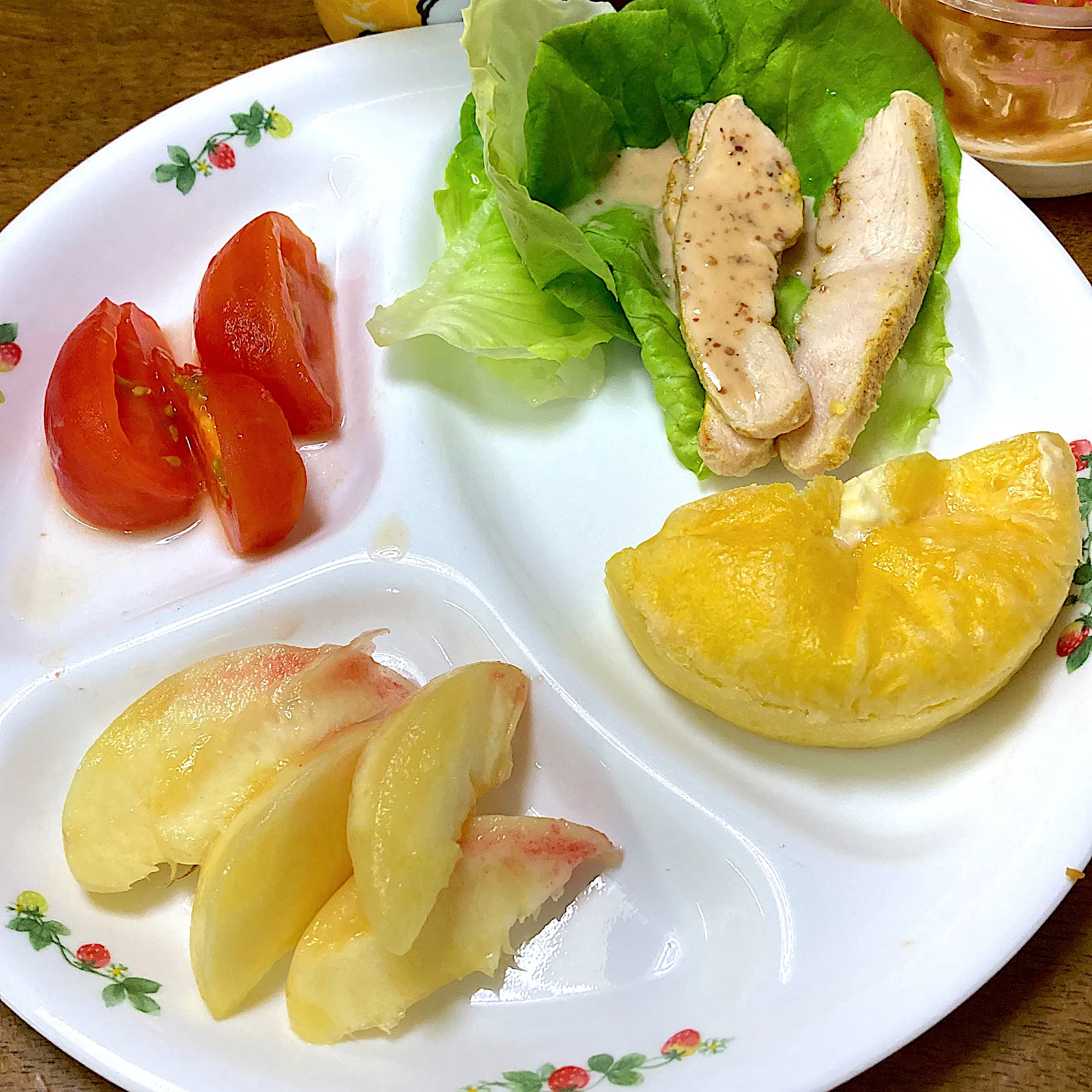 #朝食 #サラダ #桃 #本当は胡瓜とバジルパンもあった、食べた