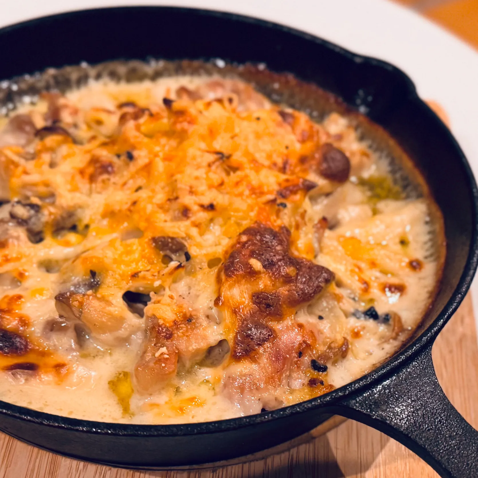 マカロニグラタンが好きなので寒いこの時期はシリーズ化しそうです #グラタン #鶏肉 #ペンネ #鉄板 #クリームソース