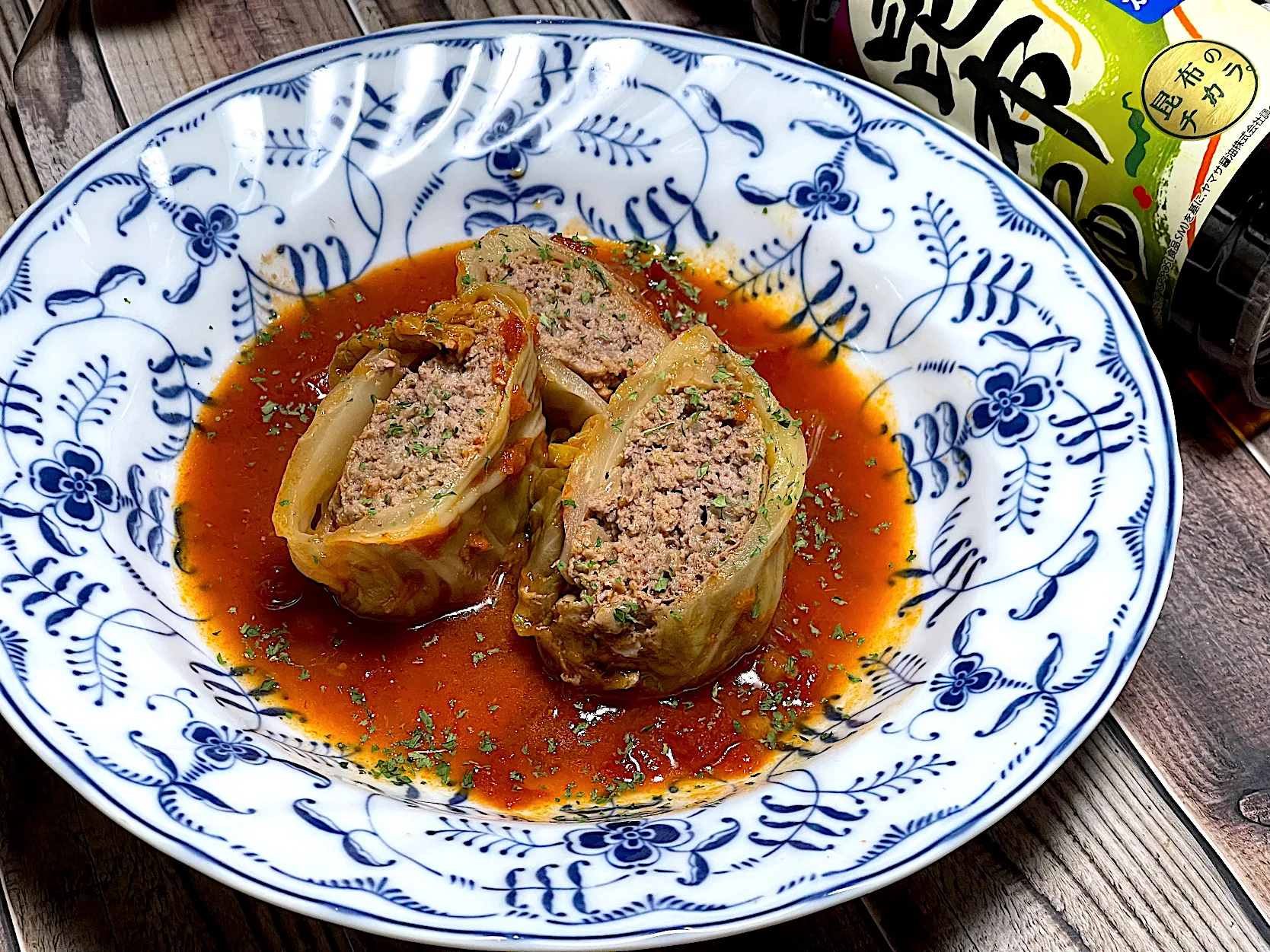 このロールキャベツは、巻き込みでつくるので、結ぶ食材は、いらないです。飴色玉ねぎが、難しいなら、きつね色でも可。