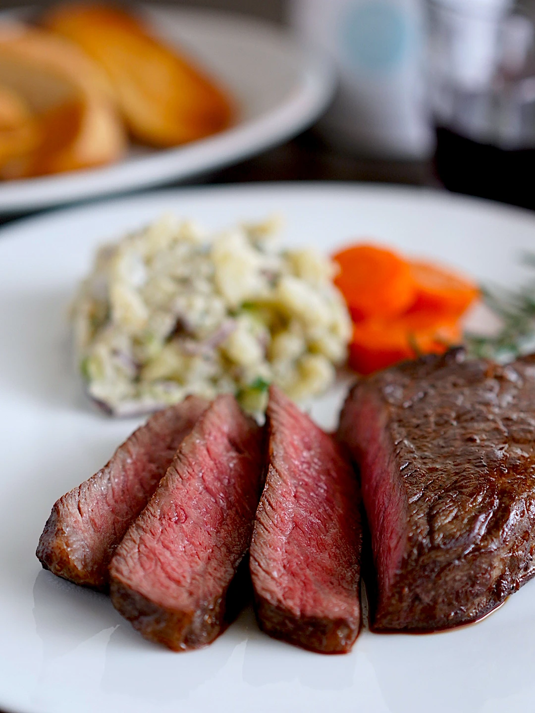 私も分厚めのステーキは失敗したくなくて、55℃で低温調理してから、表面だけ焼いてます😄