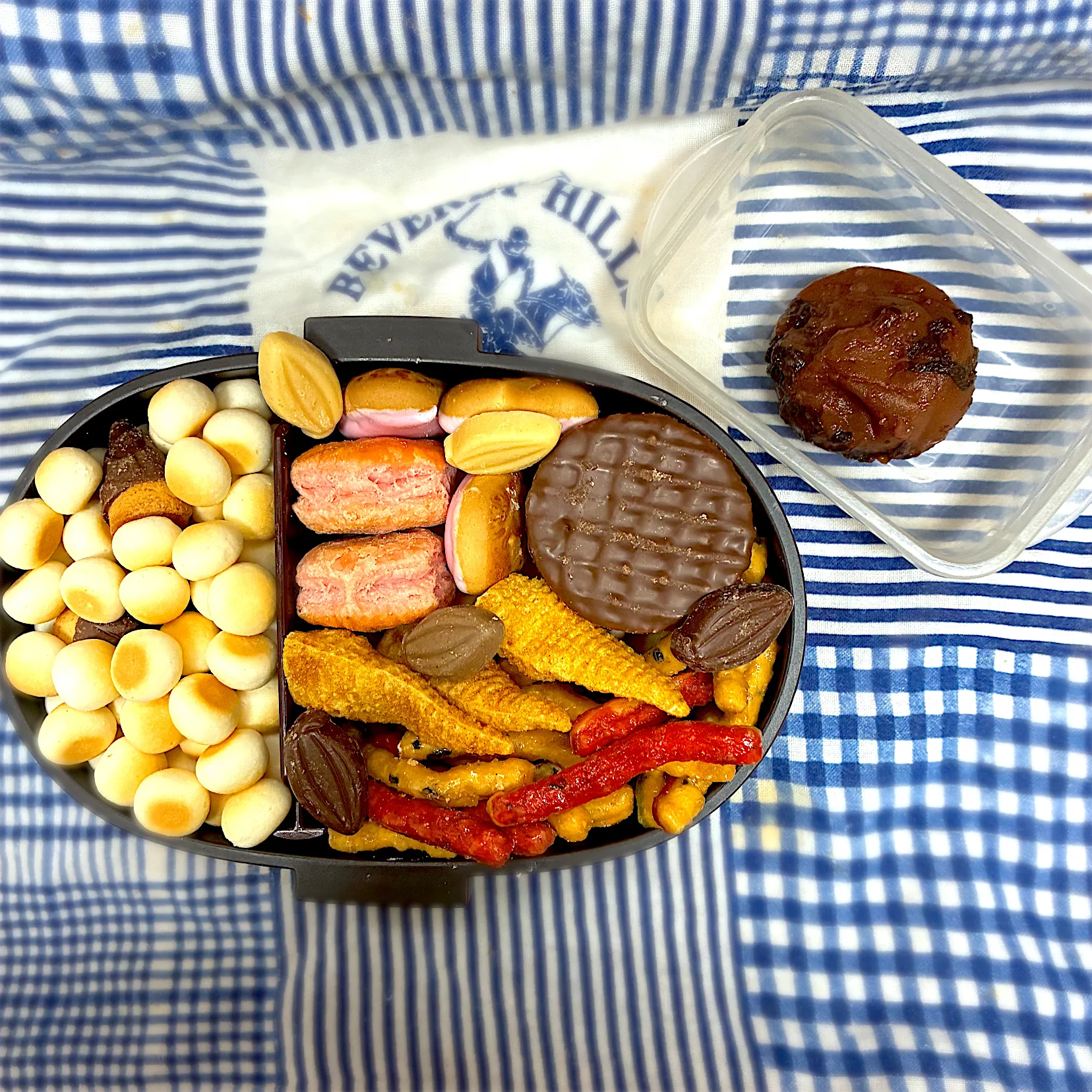 今日はお姉ちゃん高校生活最後のお弁当なのでサプライズでお菓子のお弁当にしました😏お口直しに梅干し入れました! #お弁当初心者 #お弁当記録 #おべんとう記録 #食べてくれてありがとう #お菓子弁当 #サプライズ #最後 #お菓子 #お姉ちゃん弁当