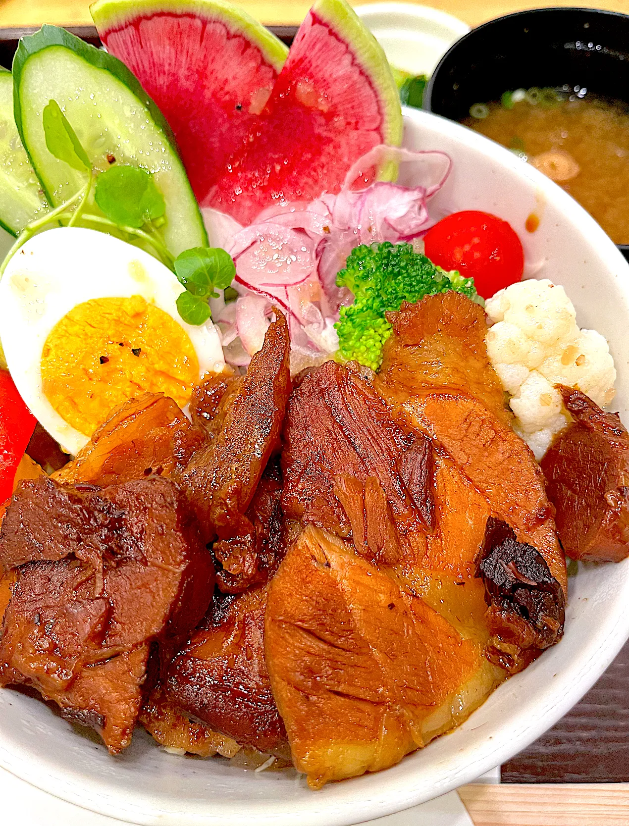 鳥チャーシュー丼 ごぼう甘辛炒め ごぼうとキノコのポ...