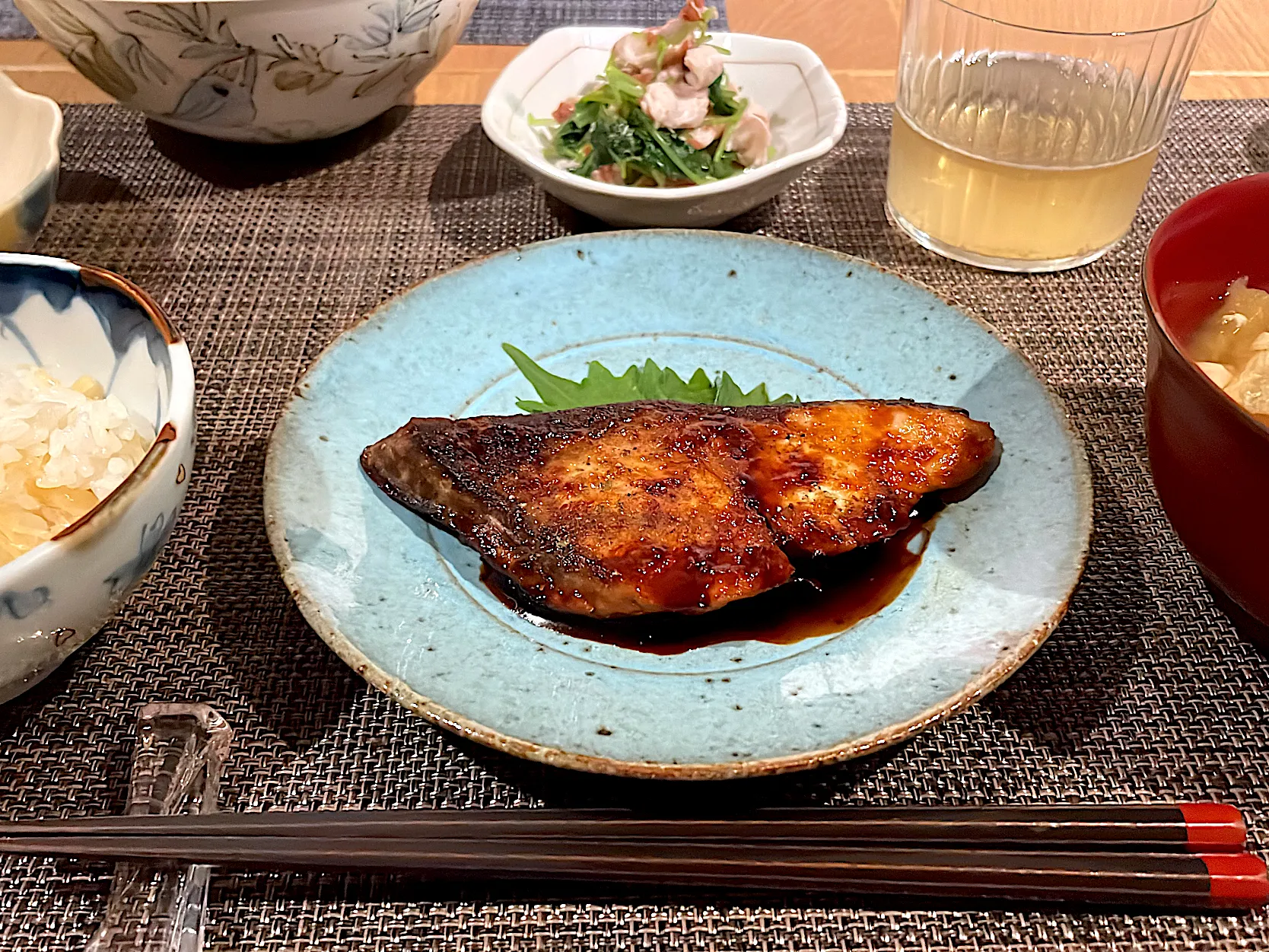 照焼きの味付けは土用の丑で貰った鰻タレの活用で、山椒も効かせてみました!