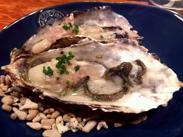 11/29(土)夕食。生牡蠣と蒸し牡蠣。ほっけ開き。...