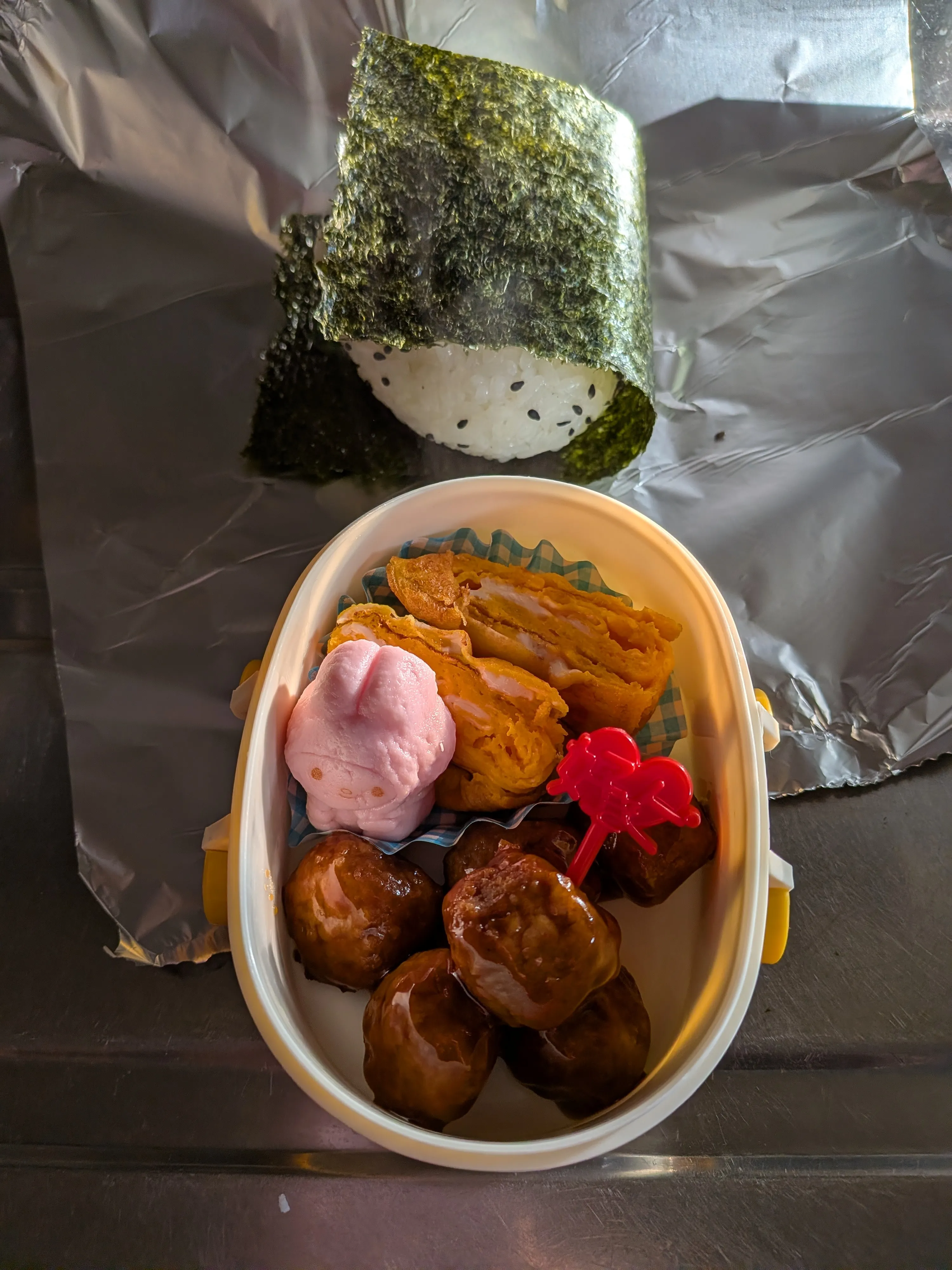 #お弁当 #旦那弁当 #レトルト #おにぎり弁当 #ミートボール