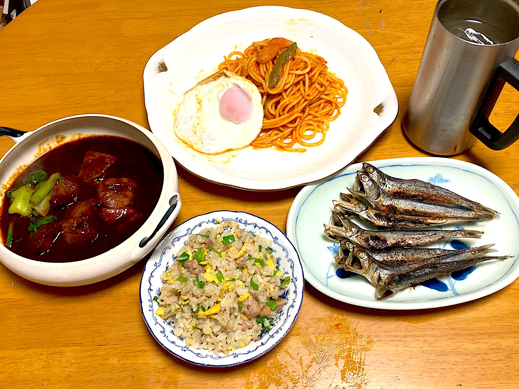 #地元の食材 #地産地消 #節約料理 #簡単料理 #無料食材 #旬の食材 #郷土料理 #鮮魚#冷蔵庫整理#冷凍庫整理#アルモンダケデ#ビーフシチュー#ナポリタン#目玉焼き#めざし#炒飯