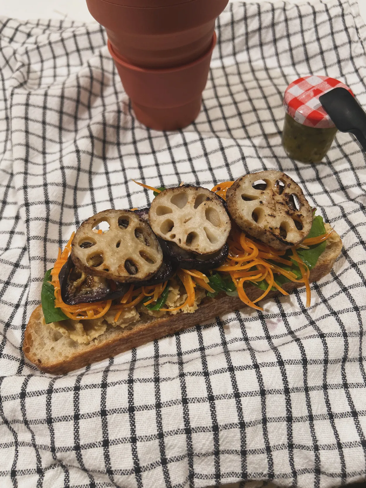#お弁当 #カンパーニュ #白桃酵母 #オープンサンド #BENTOグランプリ2025 #フムス #ラペ #グリル野菜