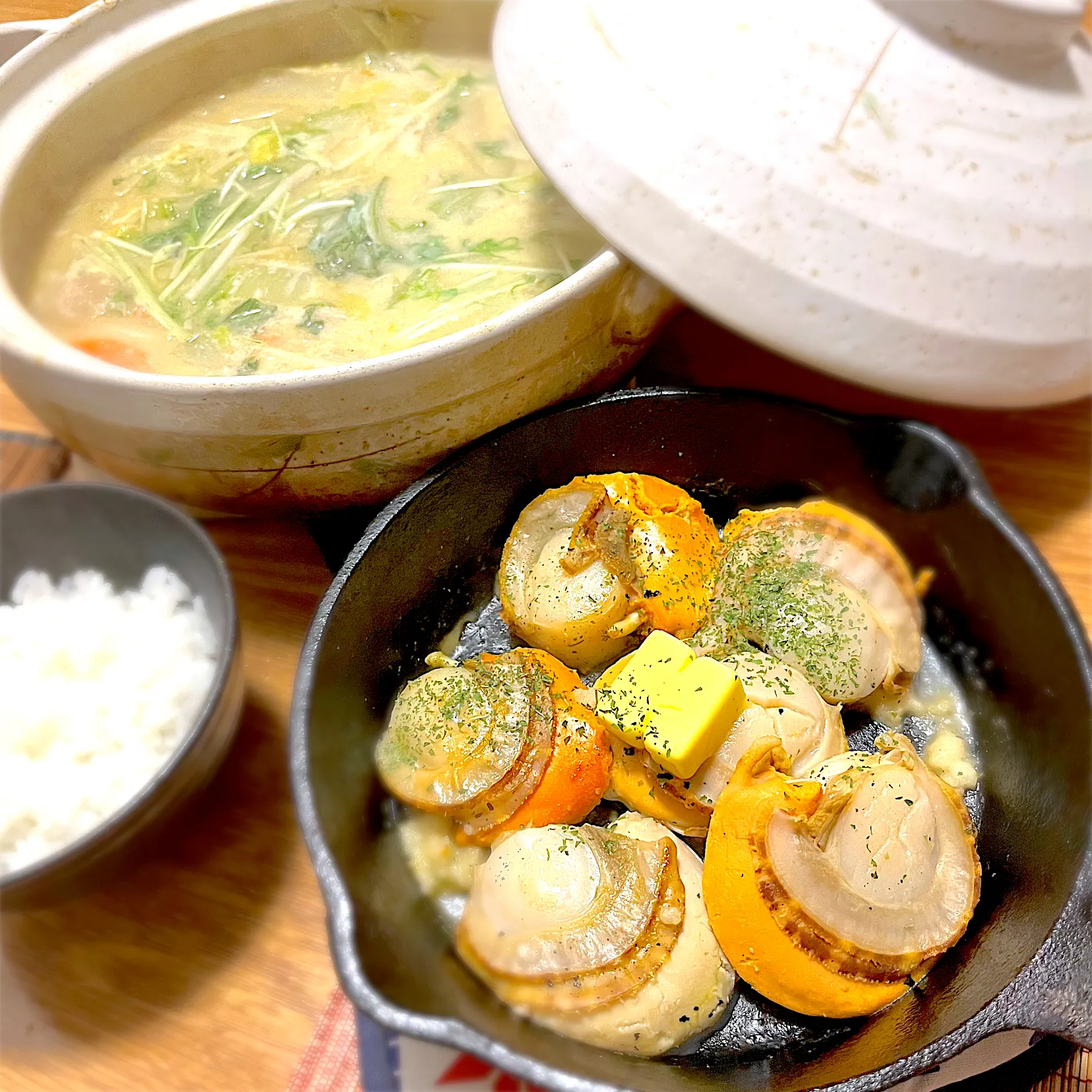 2023/12/18 ホタテガーリックバター、野菜鍋
