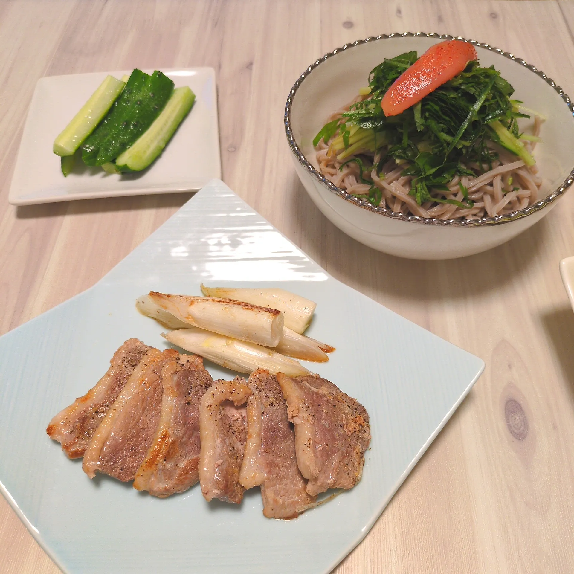 鴨ネギと明太蕎麦