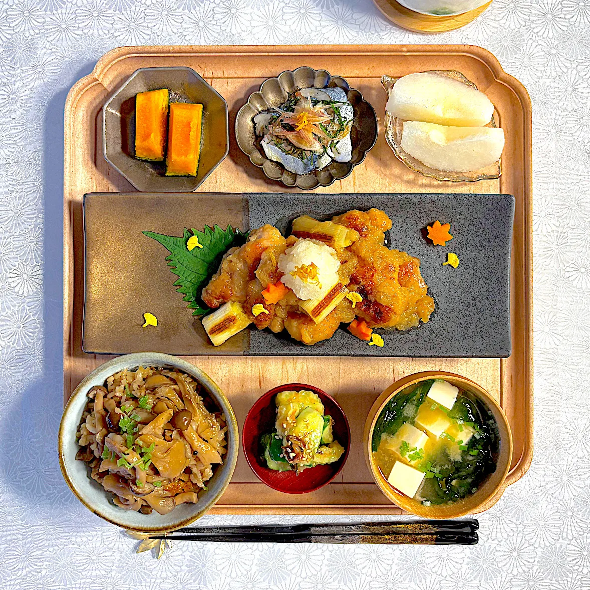 炊き込みごはんは去年作って感動した @sakura_kitchen1021 「食事処さくらの料理教室」さんのレシピを、鶏のみぞれ煮は @apin210 「あーぴん」さんのレシピを参考にさせていただきました🙏