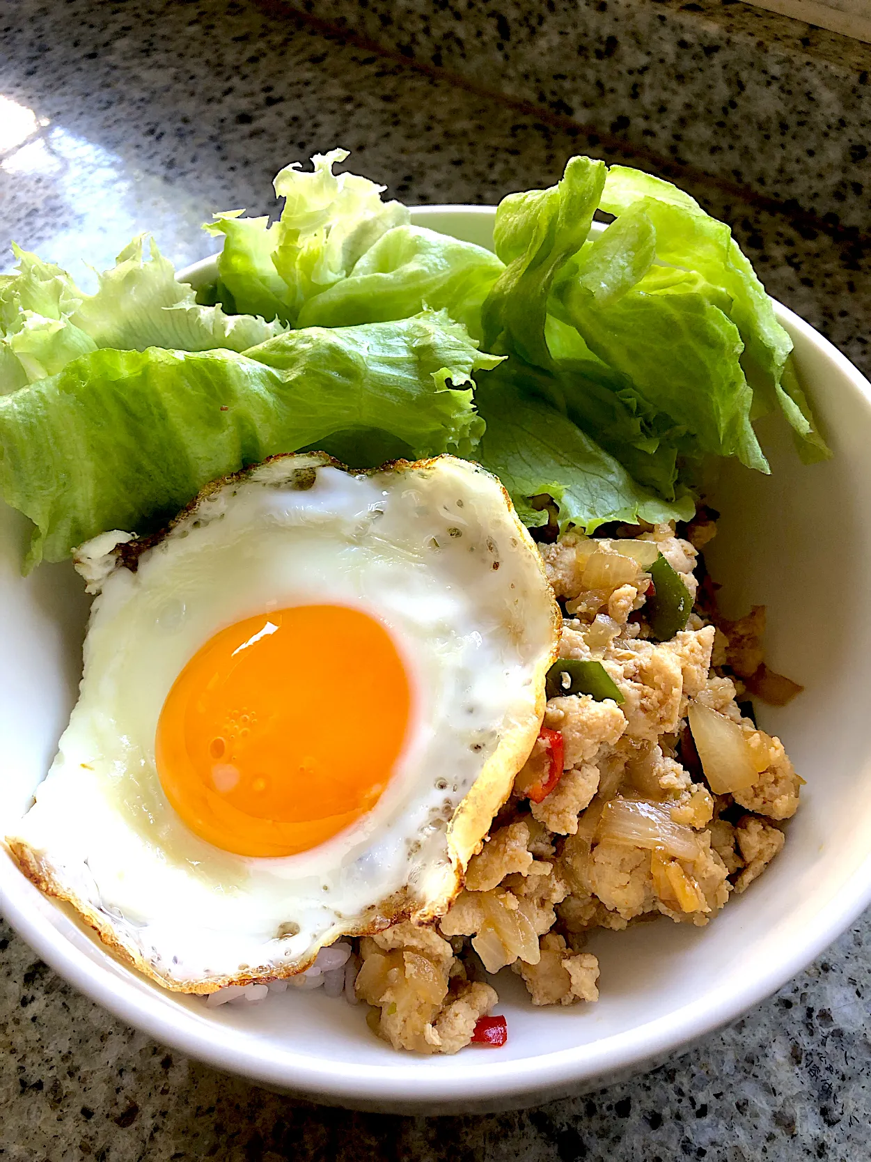 鶏ひき肉のガパオ⇒豆板醤の代わりにシラチャーで!