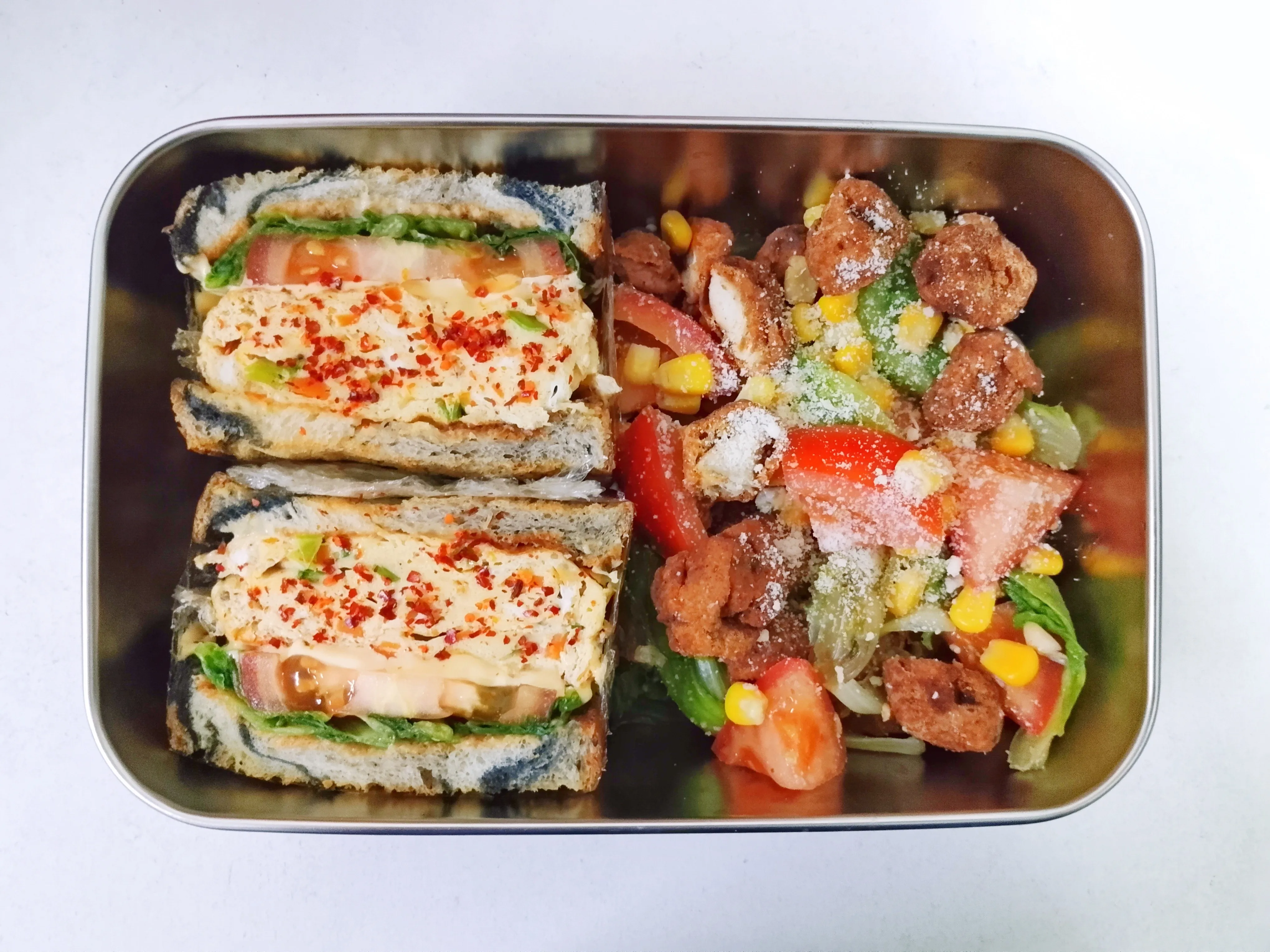 蔬菜厚蛋烧三明治+炸鸡块蔬菜沙拉