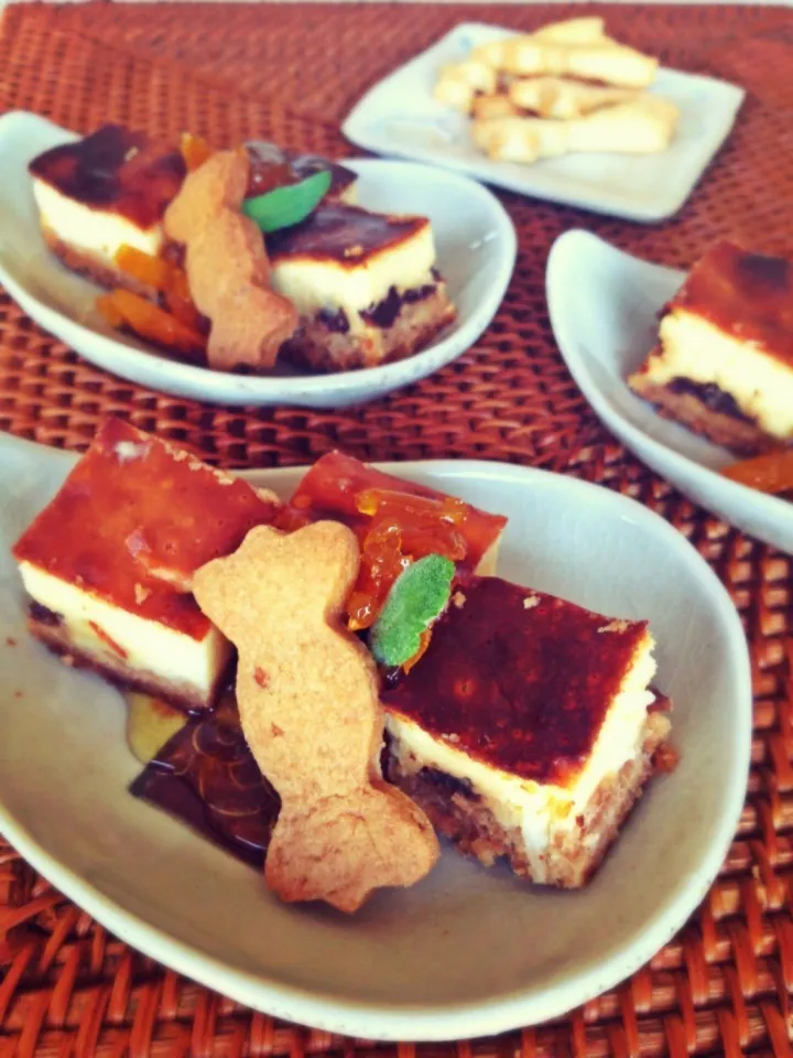 チーズケーキのつもりで食べるとさっぱりし過ぎなので、中にドライフルーツやナッツのアクセントをつけるのがオススメです(´・Д・)」♡