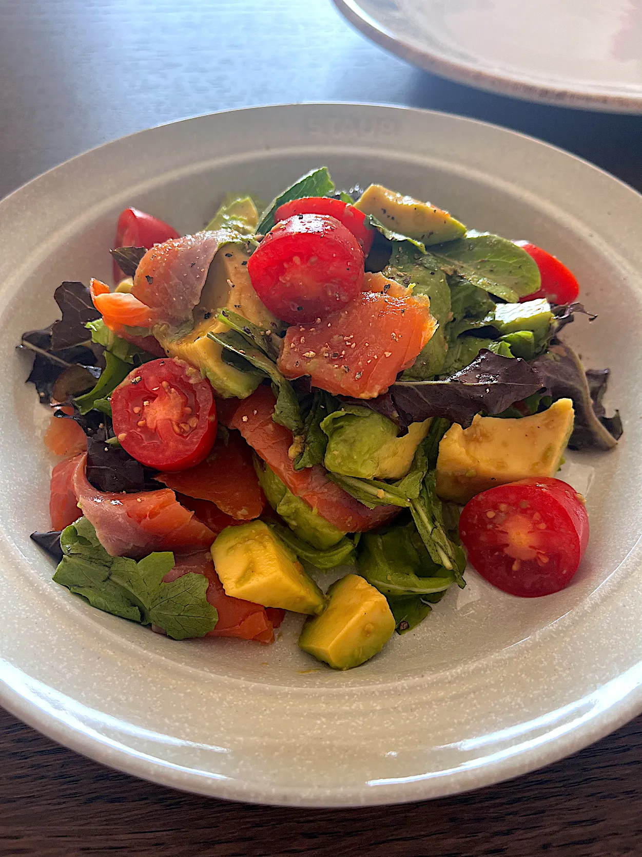 ベビーリーフ、アボカド、プチトマト、刺身用サーモン