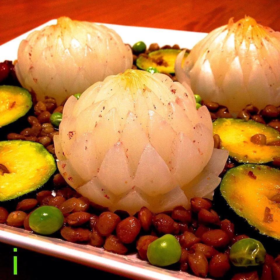 蓮の花、玉ねぎの透明感ある白でなんだかとても神々しいです✨✨