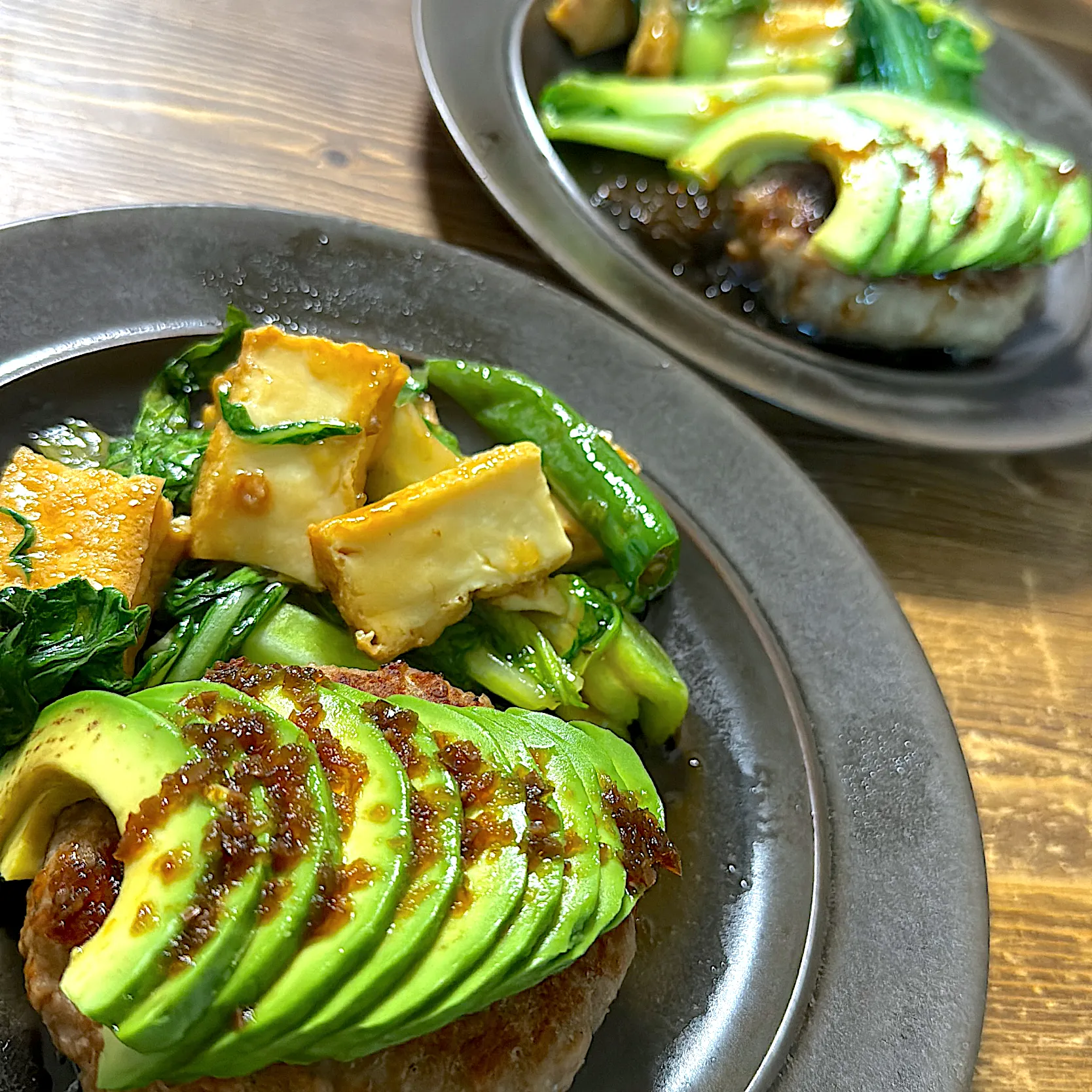 アボカドハンバーグ 厚揚げチンゲン菜の中華炒め